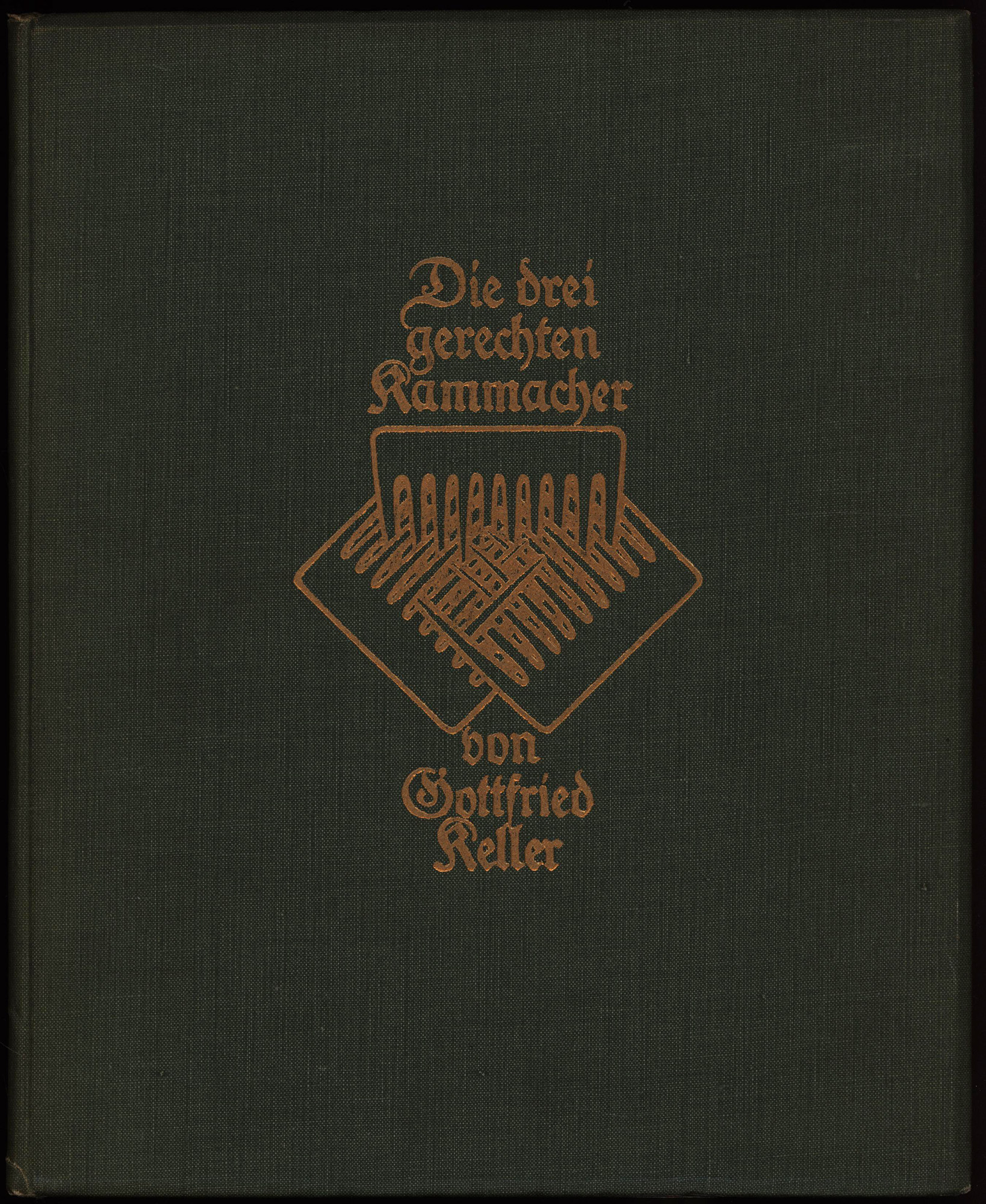 Keller, Gottfried: Die drei gerechten Kammacher. Erzählung. Mit sechs Originalradierungen von Alfred Coßmann. Wien, Verlag der Gesellschaft für vervielfältigende Kunst, 1915. 4°. 27,5 x 23 cm. 54 Seiten. Original-Leinenband mit goldgeprägtem Deckeltitel.