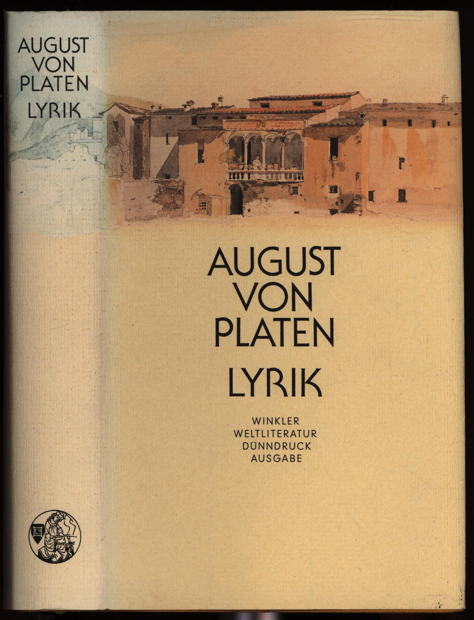 Platen, August von: Werke. Band 1: Lyrik. München, Winkler Verlag, 1982. 8°. 19,5 x 12 cm. 1006 Seiten. Original-Leinenband mit Original-Schutzumschlag und gelbem Kopfschnitt. Dünndruckausgabe. (Winkler Weltliteratur Dünndruck Ausgabe).