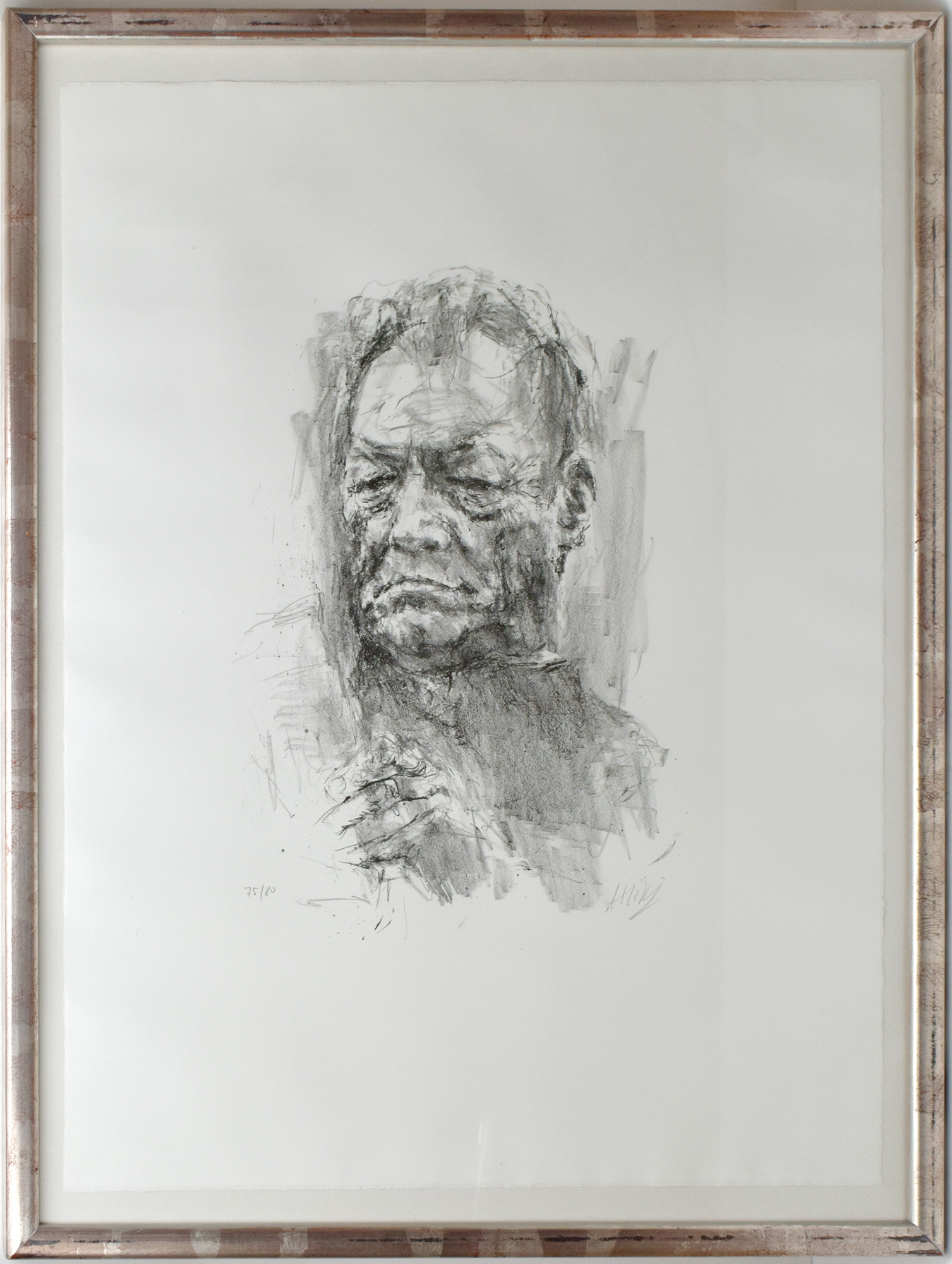 Nummer 75 von 80 nummerierten Original-Lithografien. Unterhalb der Abbildung von Bernhard Heisig in Blei signiert. Herausgegeben von der Büchergilde Gutenberg in der Art-Edition „Willy Brandt“ 1999. Professionell hinter Glas im versilberten Holzrahmen gerahmt. Nicht ausgerahmt. Maße Abbildung: 40,0 x 30,0 cm. Maße Blatt: 65,0 x 51,0 cm. Maße Rahmen: 74,0 x 58,0 cm. Tadelloser Zustand.