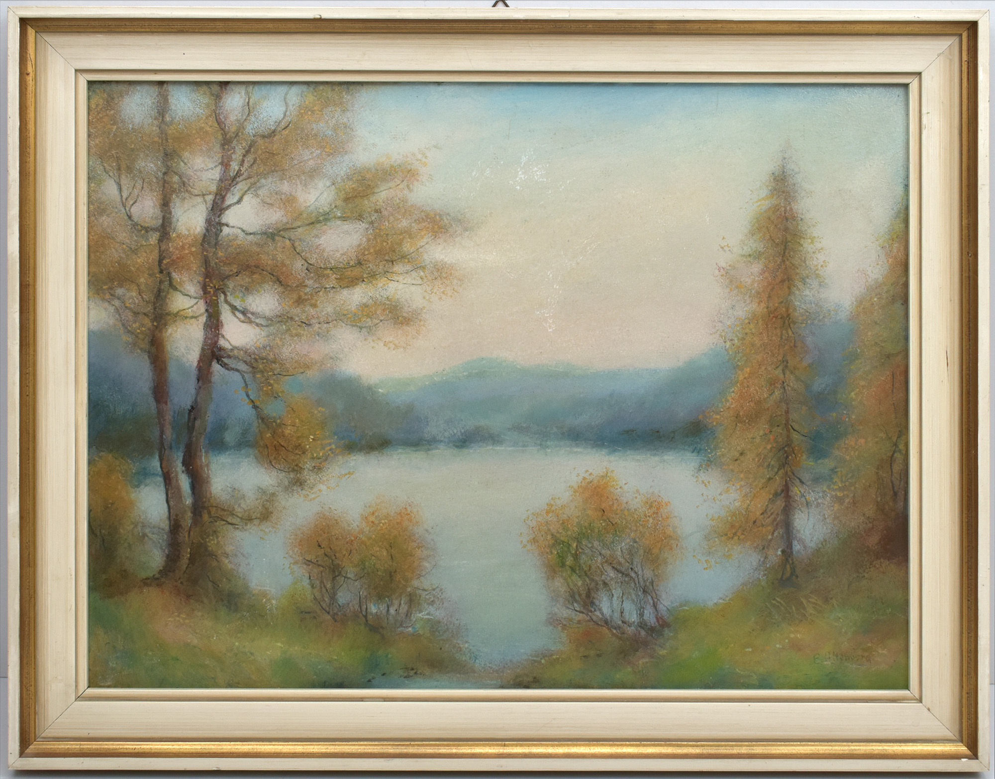 Altenberg, Landschaft mit See. [Signiertes Ölgemälde auf Holz, gerahmt].