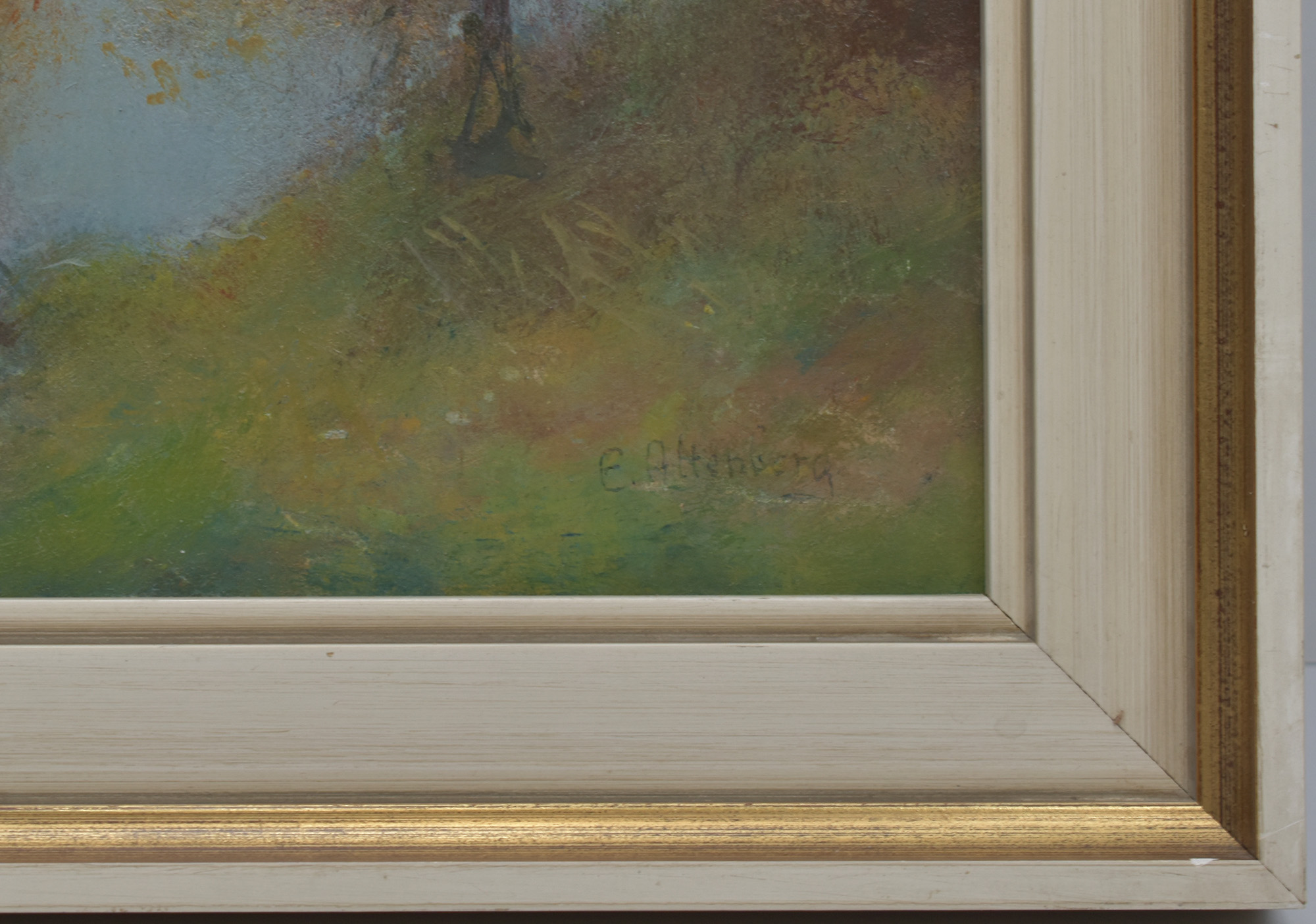 Oil painting on wood, signed in black by Eugen Altenberg in the lower right corner. Professionally framed in a partially gilded frame. Image dimensions: 30.0 x 40.0 cm. Frame dimensions: 37.0 x 47.0 cm. Provenance: From the estate of the art collector and author Ralf Seilheimer, with his inventory number on the reverse. Painting with minimal rubbing. Overall very good condition.