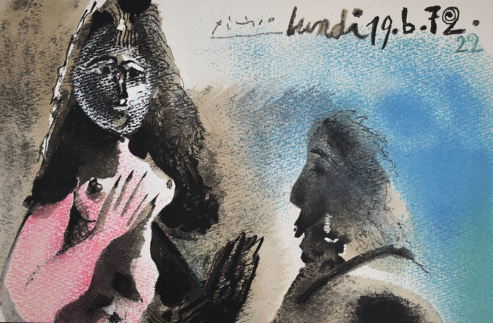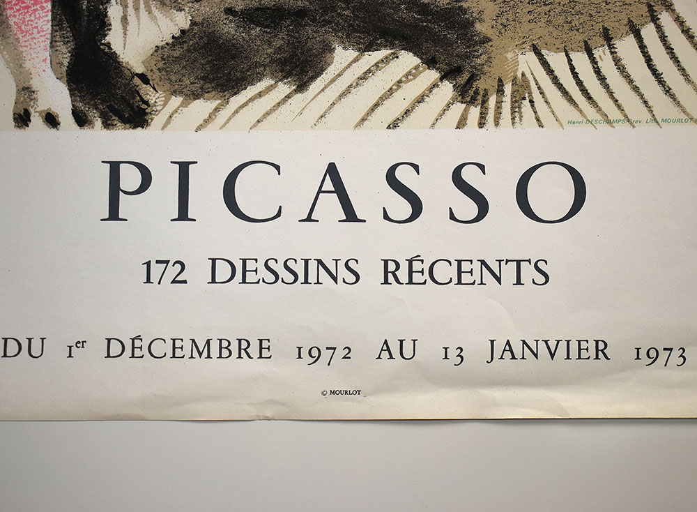 Picasso, Pablo: 172 dessins récents. 1972. [Ausstellungsplakat / exhibition poster]. (Pablo Picasso, geb. 25.10.1881 in Málaga, Spanien, gest. 08.04.1973 in Mougins, Frankreich, voller Name Pablo Diego José Francisco de Paula Juan Nepomuceno María de los Remedios Cipriano de la Santísima Trinidad Ruiz y Picasso, spanischer Maler, Grafiker und Bildhauer).