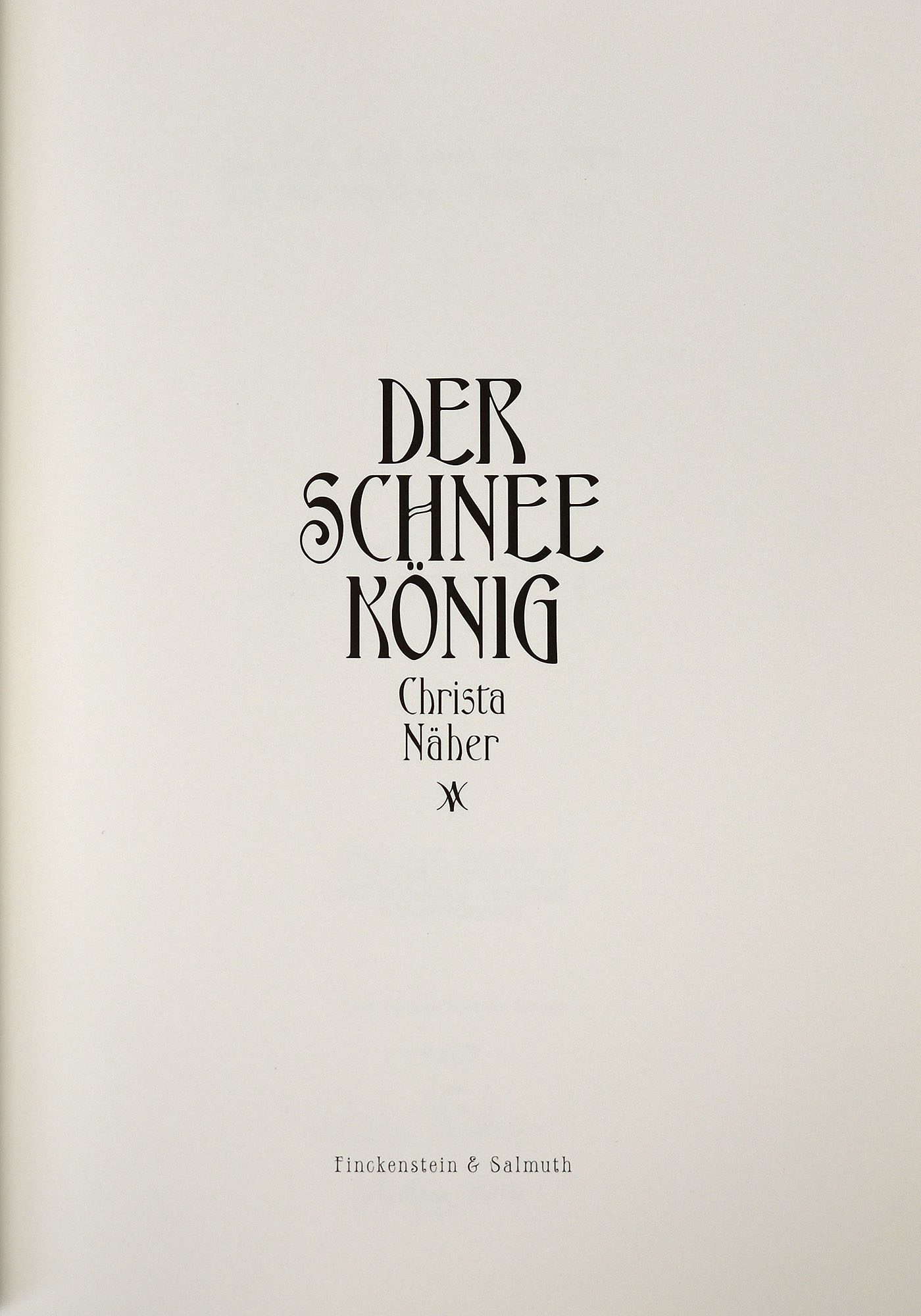 Näher, Christa: Der Schneekönig. [Signiertes Widmungsexemplar.] Berlin, Finckenstein & Salmuth, 2011. Groß-4°. 36,5 x 26,5 cm. [48] Blatt. Original-Leinenband mit goldgeprägtem Deckel- und Rückentitel.