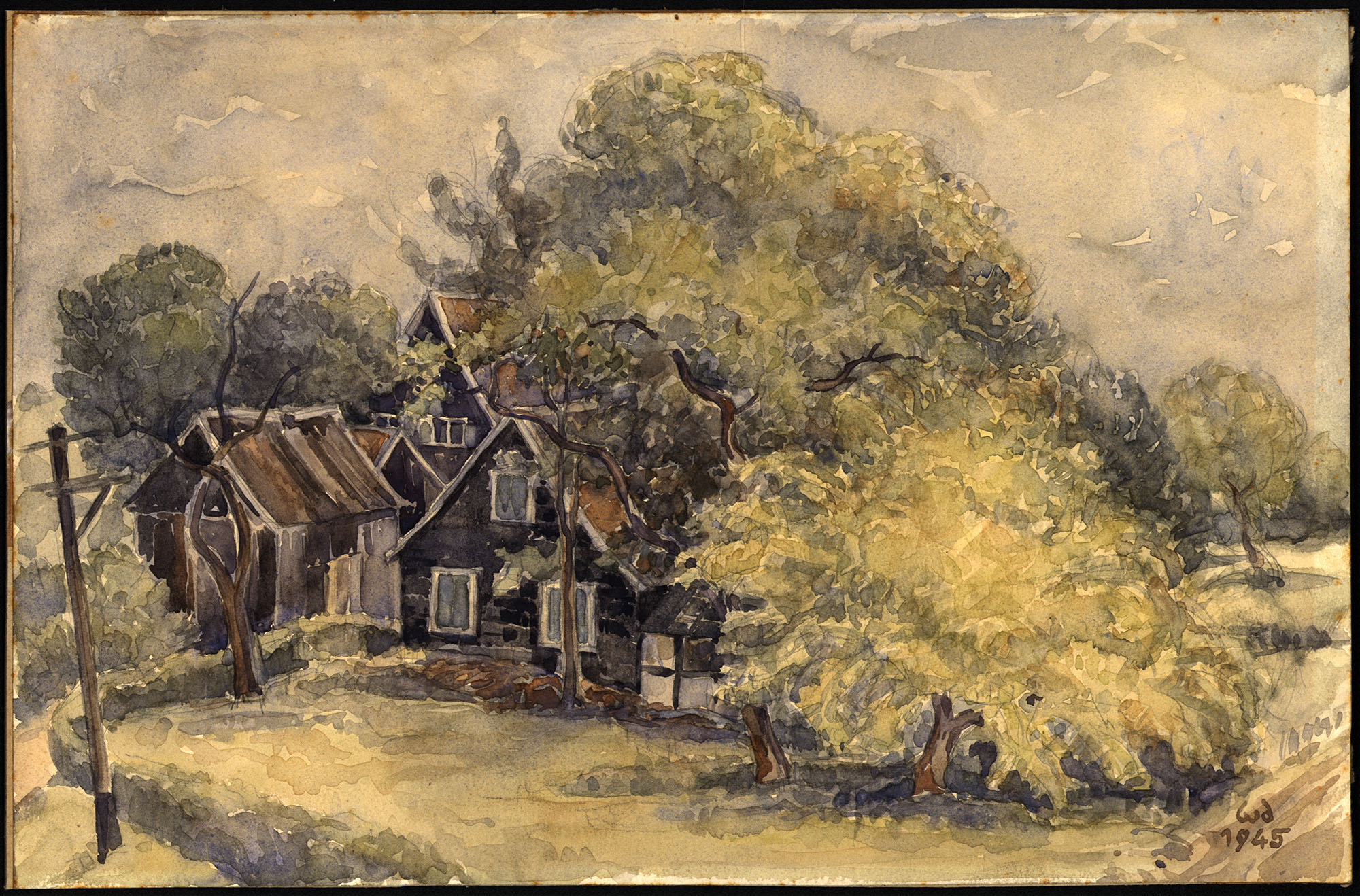 Deutzmann, Willi: Landhaus. 1945. [Monogrammiertes Original-Aquarell / monogrammed original watercolour]. (Willi Deutzmann, geboren am 5.2.1897 in Solingen-Wald, gestorben am 28.8.1958 ebenda. Mitglied der Künstlergruppe „junger westen“).
