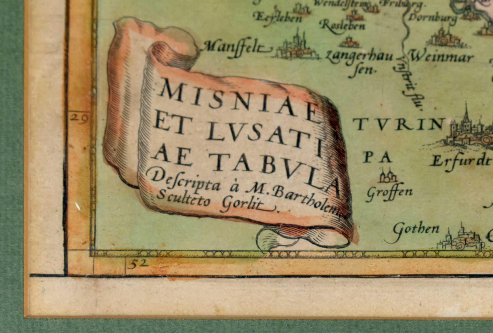 Scultetus, Misniae Et Lusatiae Tabula. Altkolorierter Kupferstich, gerahmt.