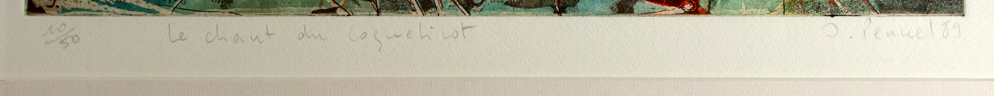 Penuel, Le chant du coquelicot. [19]89. Original-Radierung, Aquatinta, gerahmt.