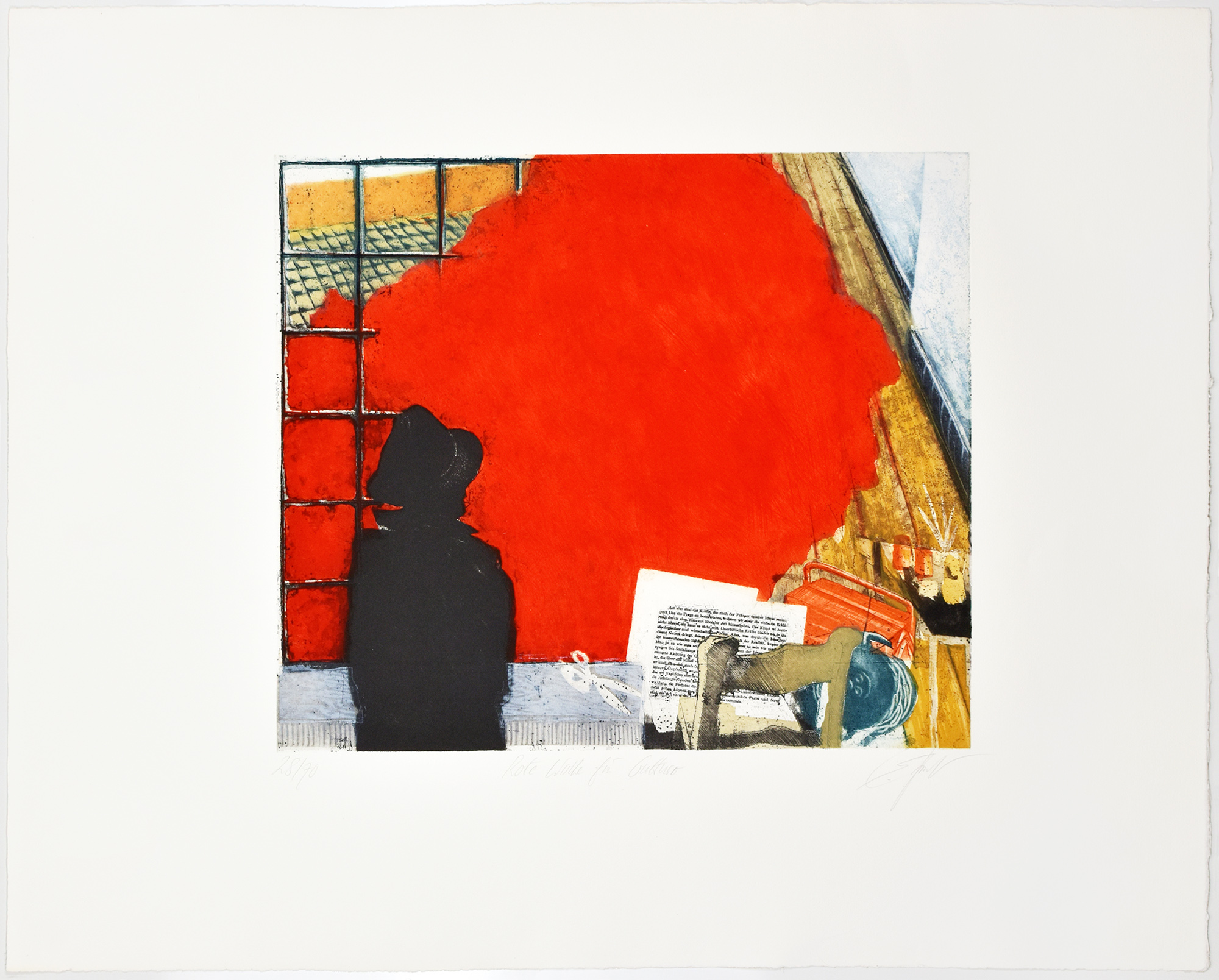 Froeschlin, Eckhardt: Rote Wolke für Guttuso. [Signierte Original-Grafik /signed original graphic art print.] (Eckhardt Froeschlin, geb. 1953 in Tettnang, deutscher Künstler mit den Schwerpunkten Druckgrafik, Gestaltung und Herausgabe von Künstlerbüchern, Reiseaquarellen und Malerei. 1990 Gründung der Edition Schwarze Reihe).