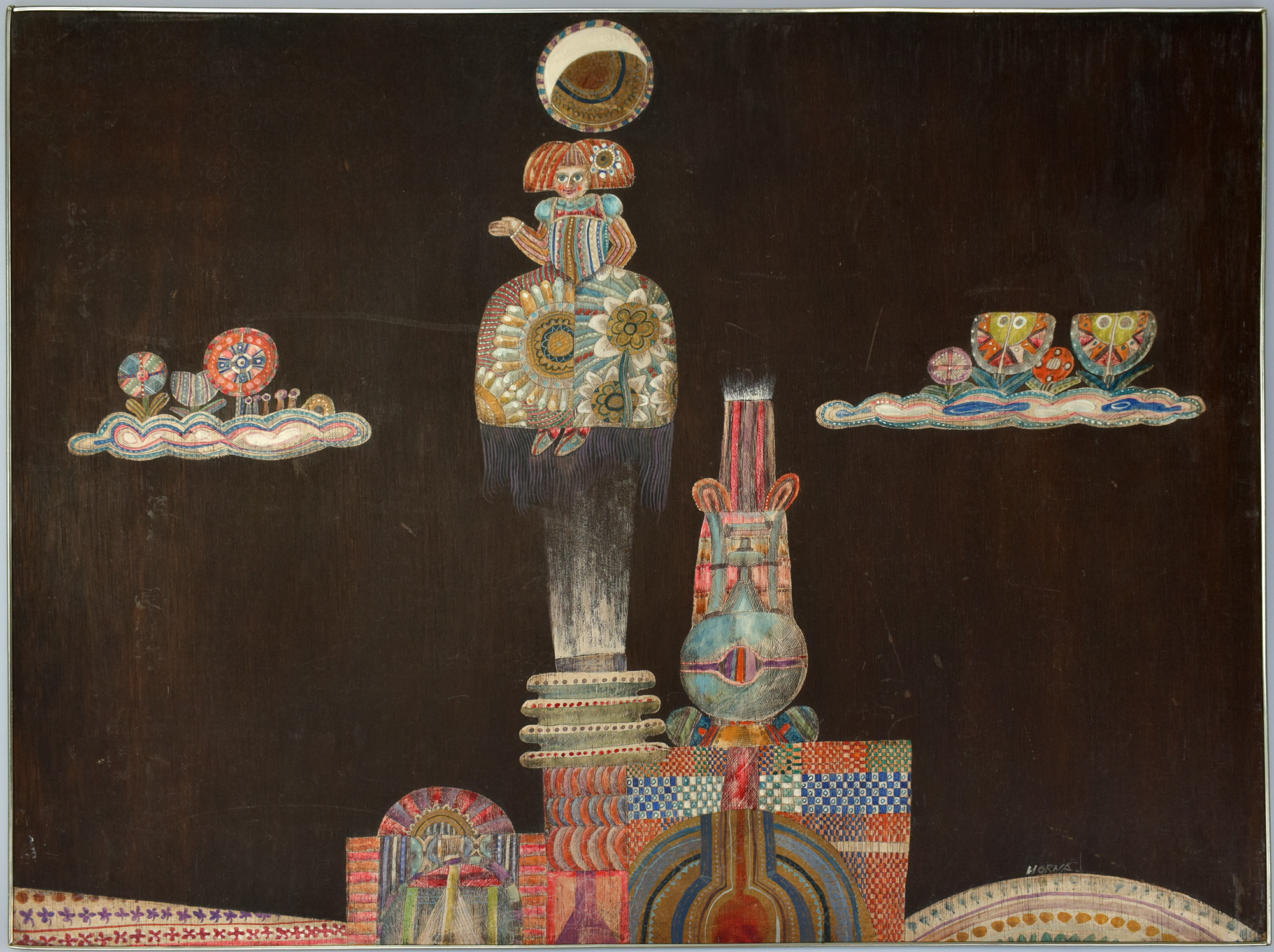 Horna, Luis Ignacio de: Menina que sale. [Unikat, Signierte Original-Malerei / Unique, signed original painting]. (Luis Ignacio de Horna García, geb. 1942 in Salamanca, spanischer Illustrator für Kinder- und Jugendliteratur. Künstlerische Leitung der Anaya-Editionen. Studium der Bildenden Kunst an der Universität von Sevilla).