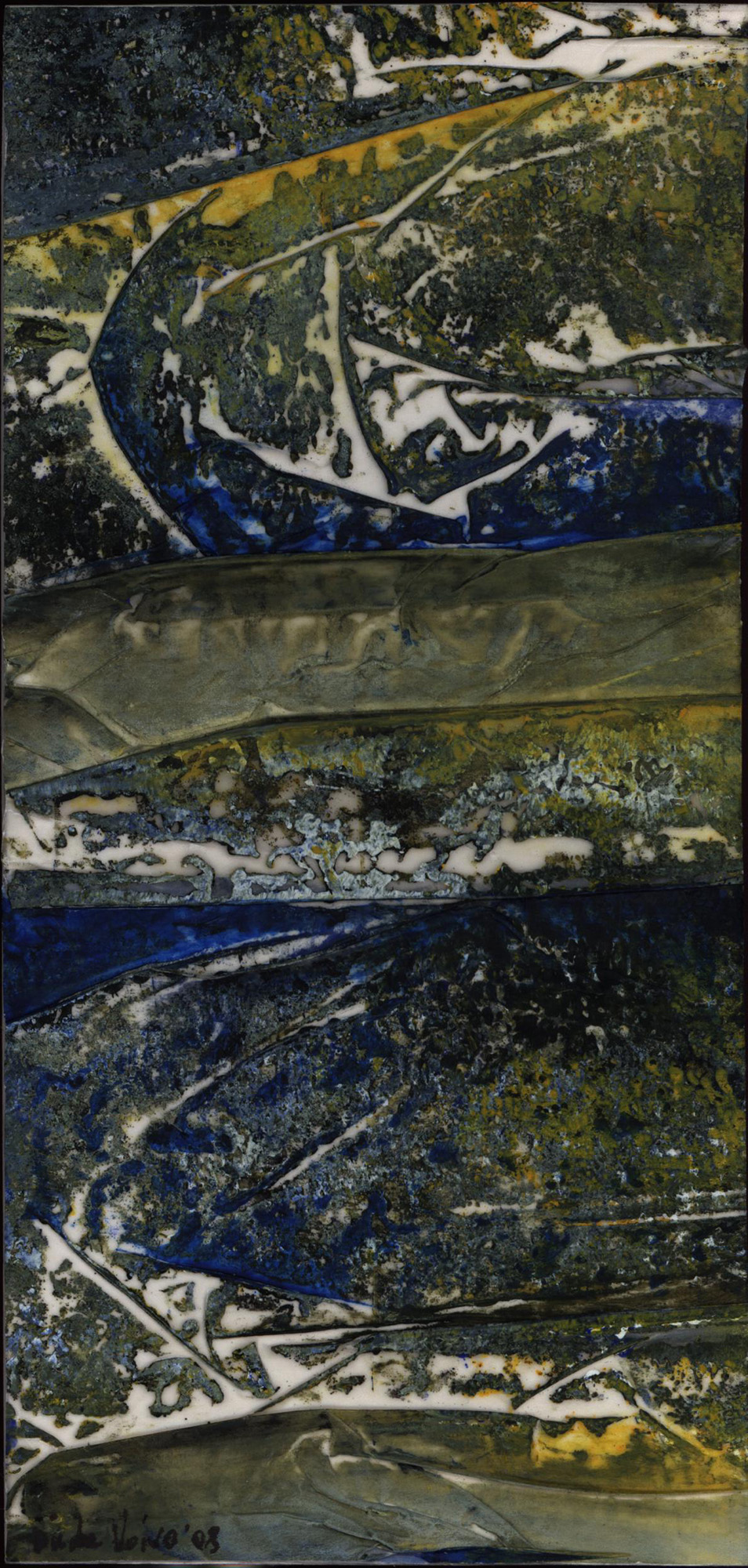 Original-Malerei, Mixed-Media, von Duda Voivo auf harzartigem Grund, rückseitig kaschiert, vorderseitig am unteren linken Rand signiert und datiert (’08), Maße: 21,0 x 10,0 cm. Provenienz: Aus dem Nachlass des Kunstsammlers und Autors Ralf Seilheimer. Sehr guter Zustand.