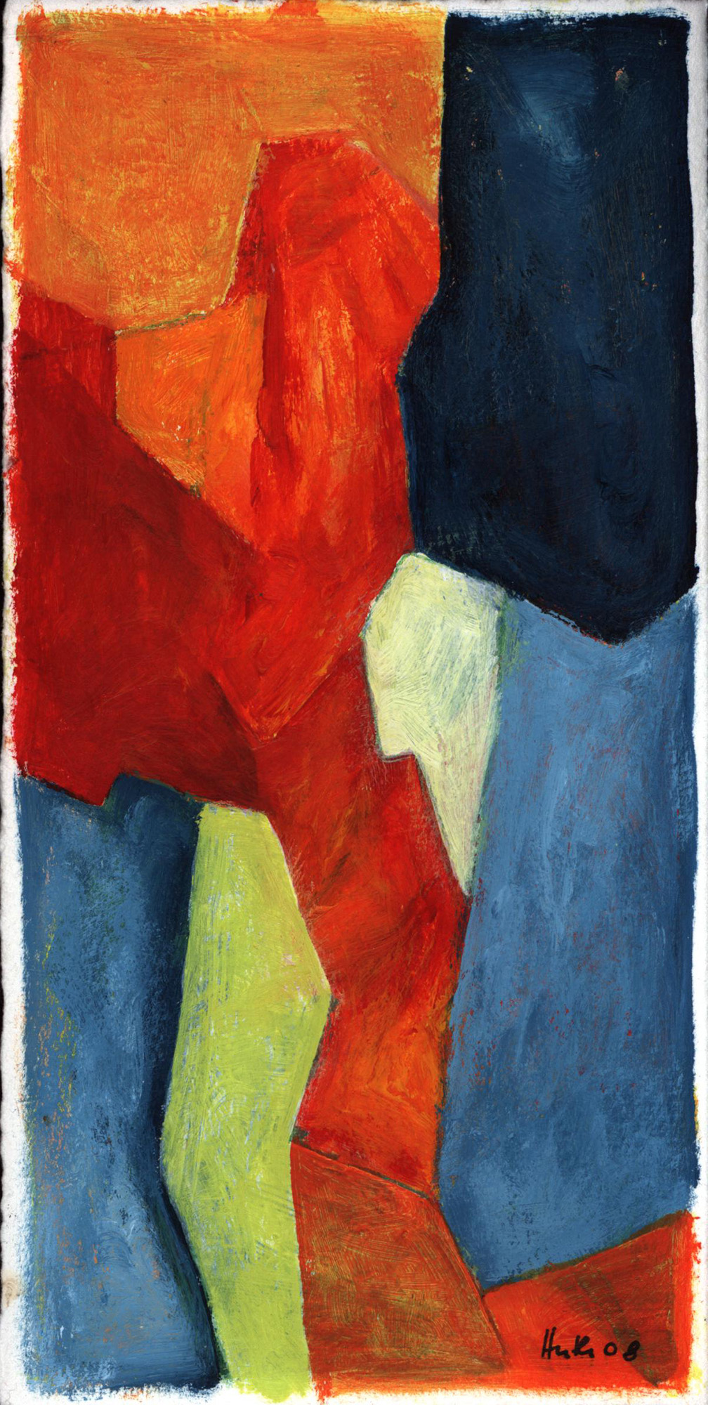 Original-Malerei von Ulle Huth [mit Acrylfarbe] auf Papier, am unteren rechten Rand signiert und datiert (’08), Blattgröße: 20,3 x 10,3 cm. Provenienz: Aus dem Nachlass des Kunstsammlers und Autors Ralf Seilheimer. Sehr guter Zustand.