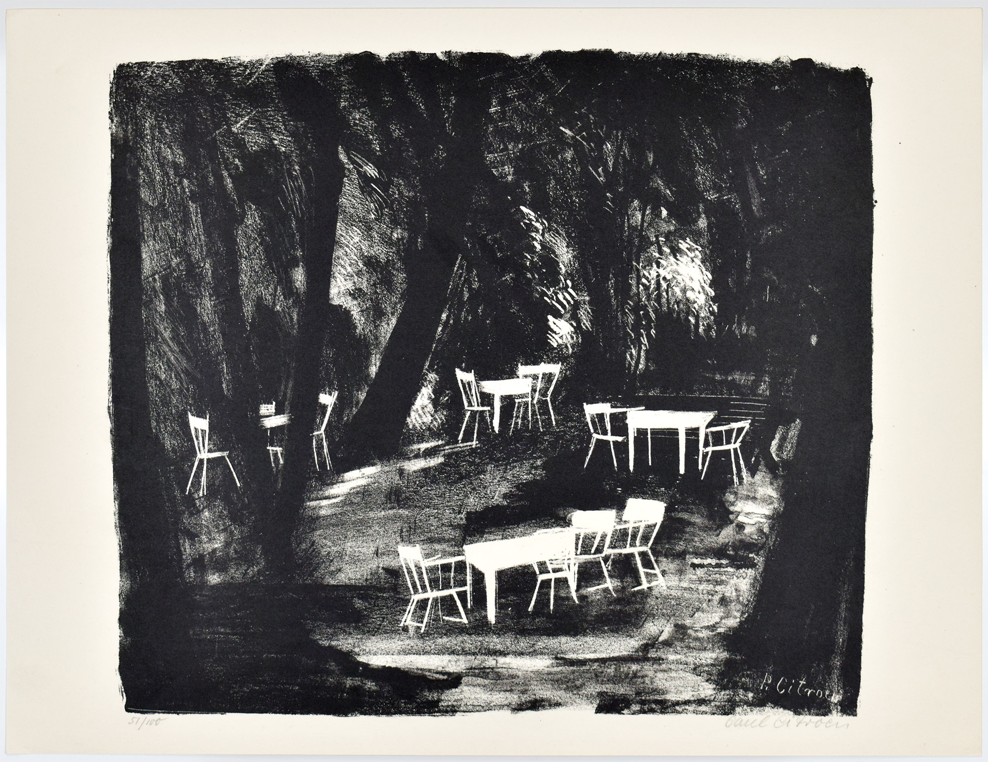 Citroen, Lichtung mit Sitzgruppen. Signierte Original-Lithografie.