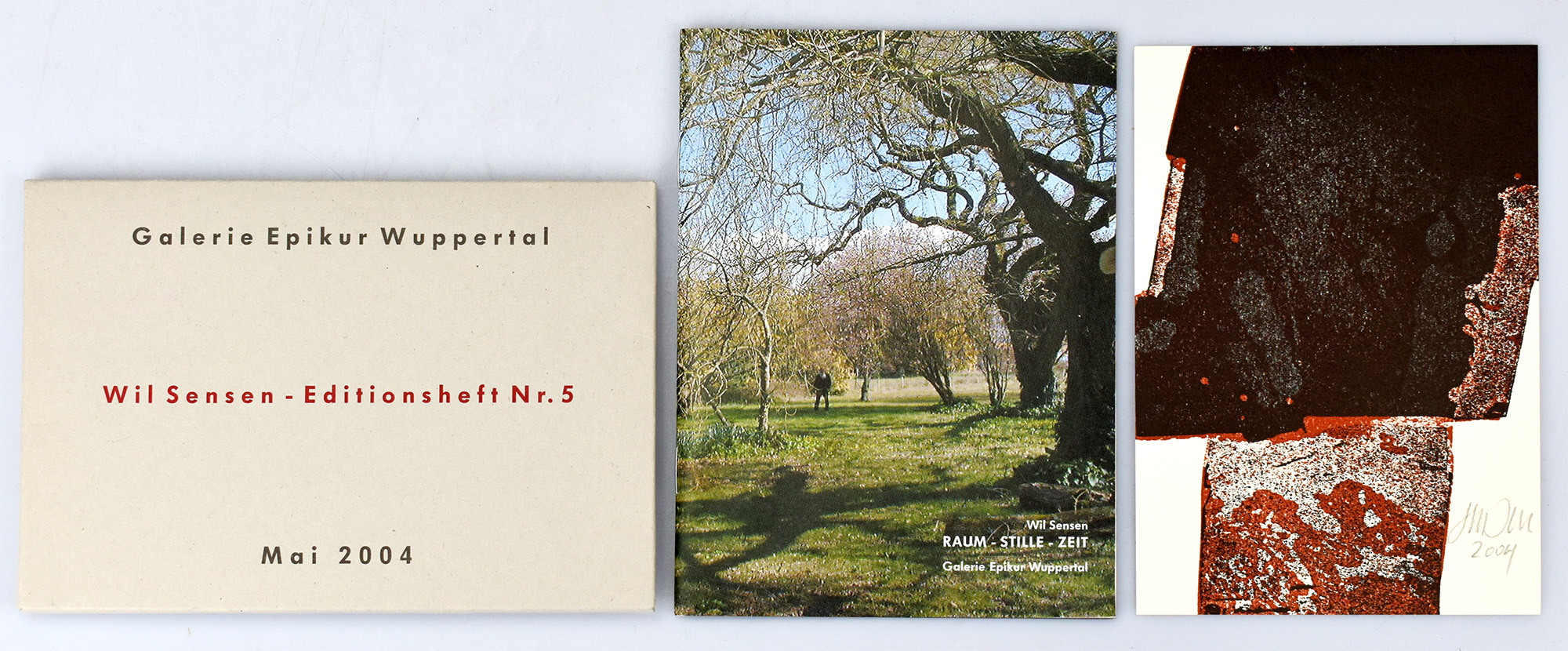 Eins von 100 Exemplaren. Mit 38 (von 40) signierten Original-Grafiken unter Verwendung unterschiedlicher Techniken, jeweils dem zugehörigen Editionsheft lose beigelegt. Eine Ausnahme bildet Heft 21, bei dem sich die Original-Grafik auf dem ersten Blatt befindet. In Heft 3 und Heft 25 fehlen die Original-Grafiken. Enthalten sind: Heft 1: Peter Caspary. Unsagbares – Juli 2003. Heft 2: Jürgen Palmtag. September 2003. Heft 3: Helge Leiberg. Offene Sprünge – Dezember 2003. Heft 4: Chr. v. Grumbkow. Gratwanderungen – März 2004. Heft 5: Wil Sensen. Mai 2004. Heft 6: Karin + Jiri Hilmar. Mensch-Natur-Technik, Juli ’04. Heft 7: Markus Lörwald. Magdalena’s Laundry, September ’04. Heft 8: Michel Meyer. Oktober 2004. Heft 9: Jochen Viehoff. Rheingold-Fotografien – Nov. 2004. Heft 10: Monika Taffet. Januar 2005. Heft 11: Herbert Maier. Speicher, März 2005. Heft 12: Hans Sieverding. Kein Kinderspiel – Mai 2005. Heft 13: Klaus Hack. Ein neuer Pygmalion? – Juli 2005. Heft 14: Andrea Hold-Ferneck. Material-Natur – Sept. 2005. Heft 15: Margareta Hesse. Material-Natur – Sept. 2005. Heft 16: Thomas Kohl. Wolken – November 2005. Heft 17: Henning Eichinger – Yvonne Kendall. Home Alchemy – März 2006. Heft 18: Reiner Seliger. Die Poesie des Materials – Mai 2006. Heft 19: Manfred Vogel. Geräteturner von Geburt an – Juli 2006. Heft 20: Peter Riek. September 2006. Heft 21: Chr. v. Grumbkow. Wege zur Farbe – Dezember 2006. Heft 22: Volker Hildebrandt. Elephants.Eyes. – Februar 2007. Heft 23: Ruth Bussmann. En passant – Juni 2007. Heft 24: Shuzo Azuchi Gulliver. Evenire – August 2007. Heft 25: Peter Caspary. Natura morta . Oktober 2007. Heft 26: Monika Thiele. Von der Schönheit des Alltäglichen. März 2008. Heft 27: Ulrich Brauchle. Querfeldein – Mai 2008. Heft 28: Herbert Egl. Koordinaten – Juni 2008. Heft 29: Christopher Kochs. Die Summe der Möglichkeiten. Oktober 2008. Heft 30: Nadine Wölk. Deleted Scenes – Works 2008. November 2008. Heft 31: Markus Lörwald. Wagnis Wirklichkeit – Januar 2009. Heft 32: Michael Dillmann. Sieverding – Schüle – Dillmann. März 2009. Heft 33: Wolfgang Stiller. Matchstickmen-Aspects of Life. Mai 2009. Heft 34: Susanne Kessler. Artist in Residence – In Bilico. November 2006. Heft 35: Thomas Schiela. Die Aquarelle – Dezember 2009. Heft 36. Chr. v. Grumbkow. Appassionata – September 2010. Heft 37: Anna Jander. Distanzierung von der Wirklichkeit. Dezember 2010. Heft 38: Marina Schulze. Realismus-Schein oder Wirklichkeit. September 2011. Heft 39: Piot Brehmer – Mädchen. Oktober 2011. Heft 40: Andrea Lehnert. Reals – Drei Positionen. November 2011. Sehr gutes Exemplar.