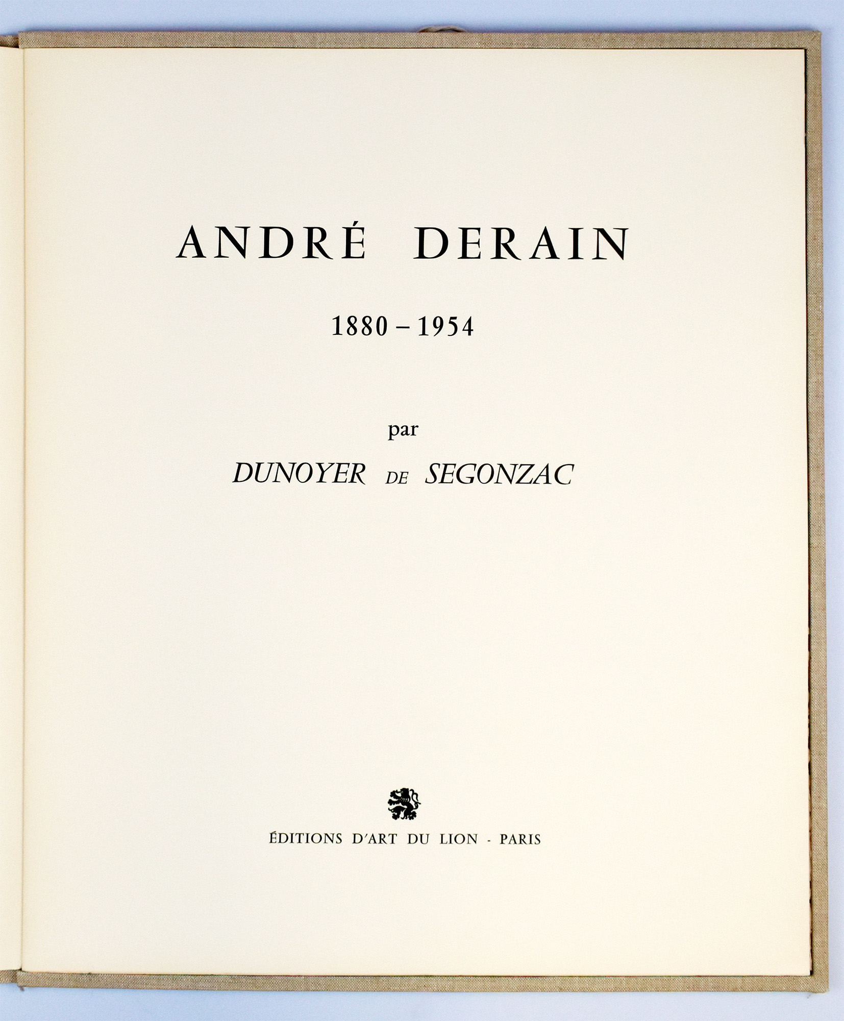 Derain, André – Dunoyer de Segonzac, André de: André Derain 1880 – 1954. Paris, Editions d’Art du Lion, 1962. Groß-2°. 63 x 51 cm. [12] Seiten auf einfach gefalzten Bögen und 12 Tafeln lose in Original-Leinenmappe mit Schleifenverschluss.
