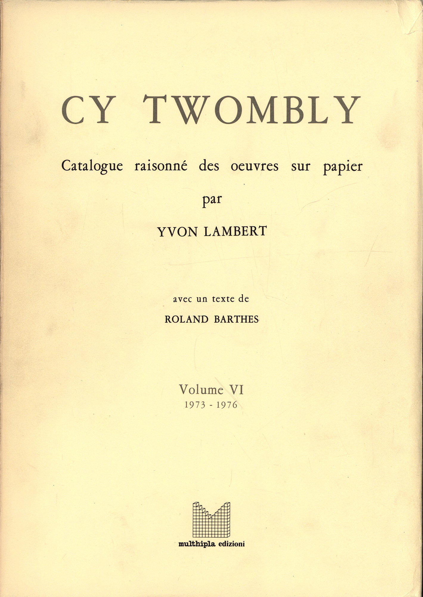 Twombly, Cy – Lambert, Yvon: Cy Twombly. Catalogue raisonné des oeuvres sur papier. Volume 6: 1973-1976. Avec un texte de Roland Barthes. Mailand, Multhipla Edizioni, 1979. 2°. 34,5 x 24,5 cm. 222 Seiten. Original-Leinenband mit Original-Schutzumschlag in Original-Leinenschuber.