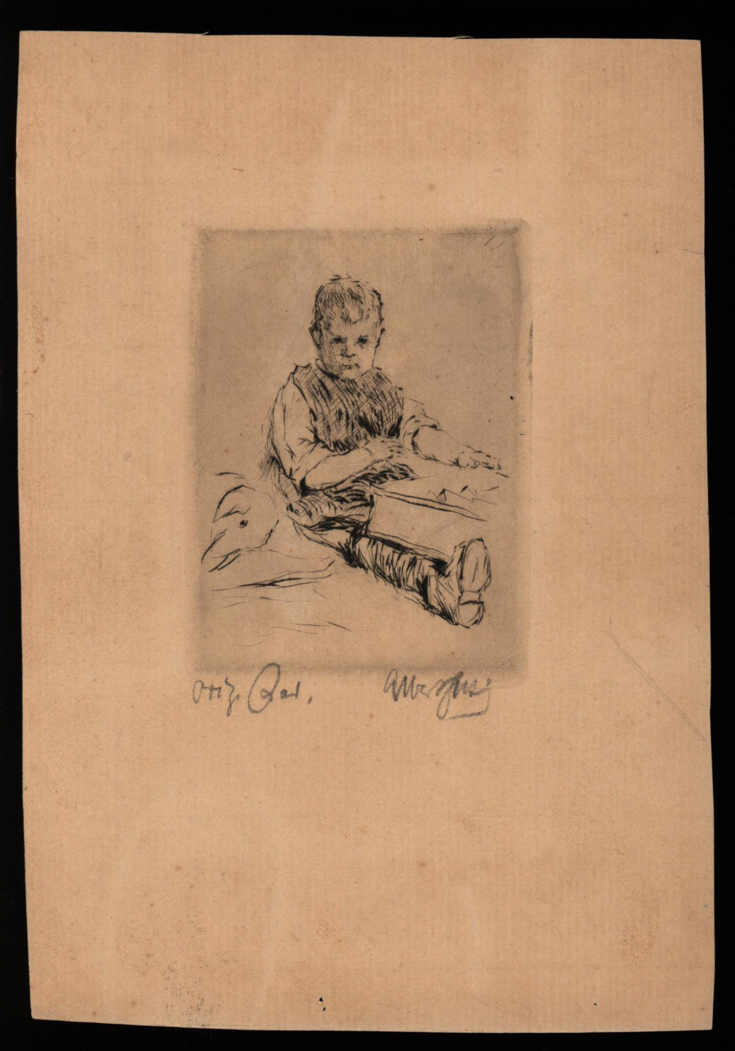 Schwarz, Portrait eines Jungen. Signierte Original-Radierung.