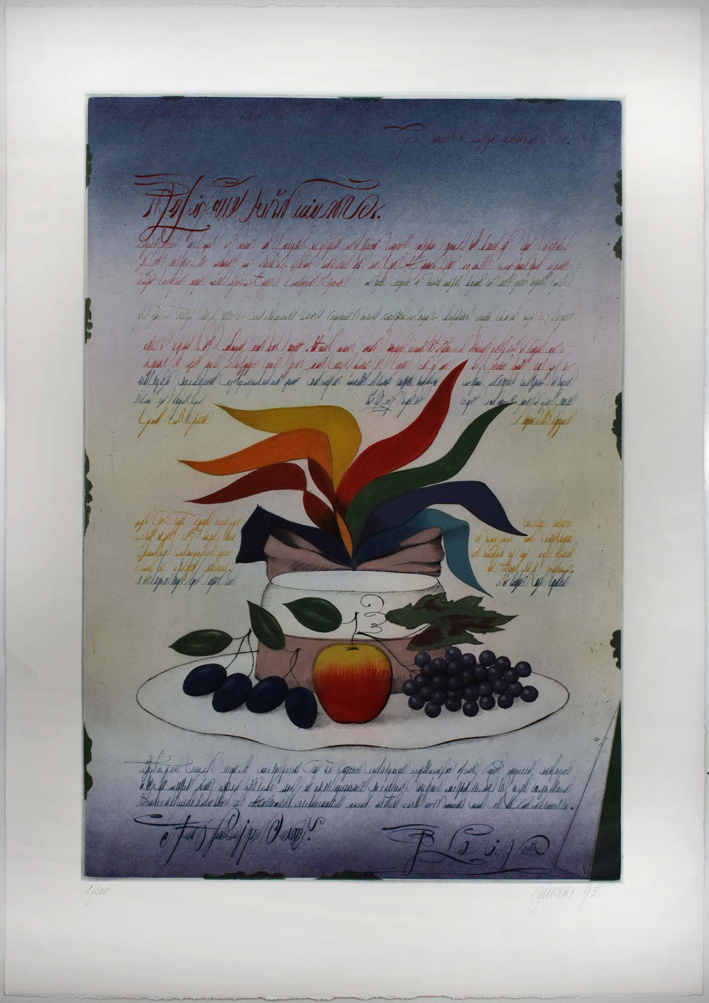 Janak, Früchtehut. 1995. Signierte Original-Radierung.