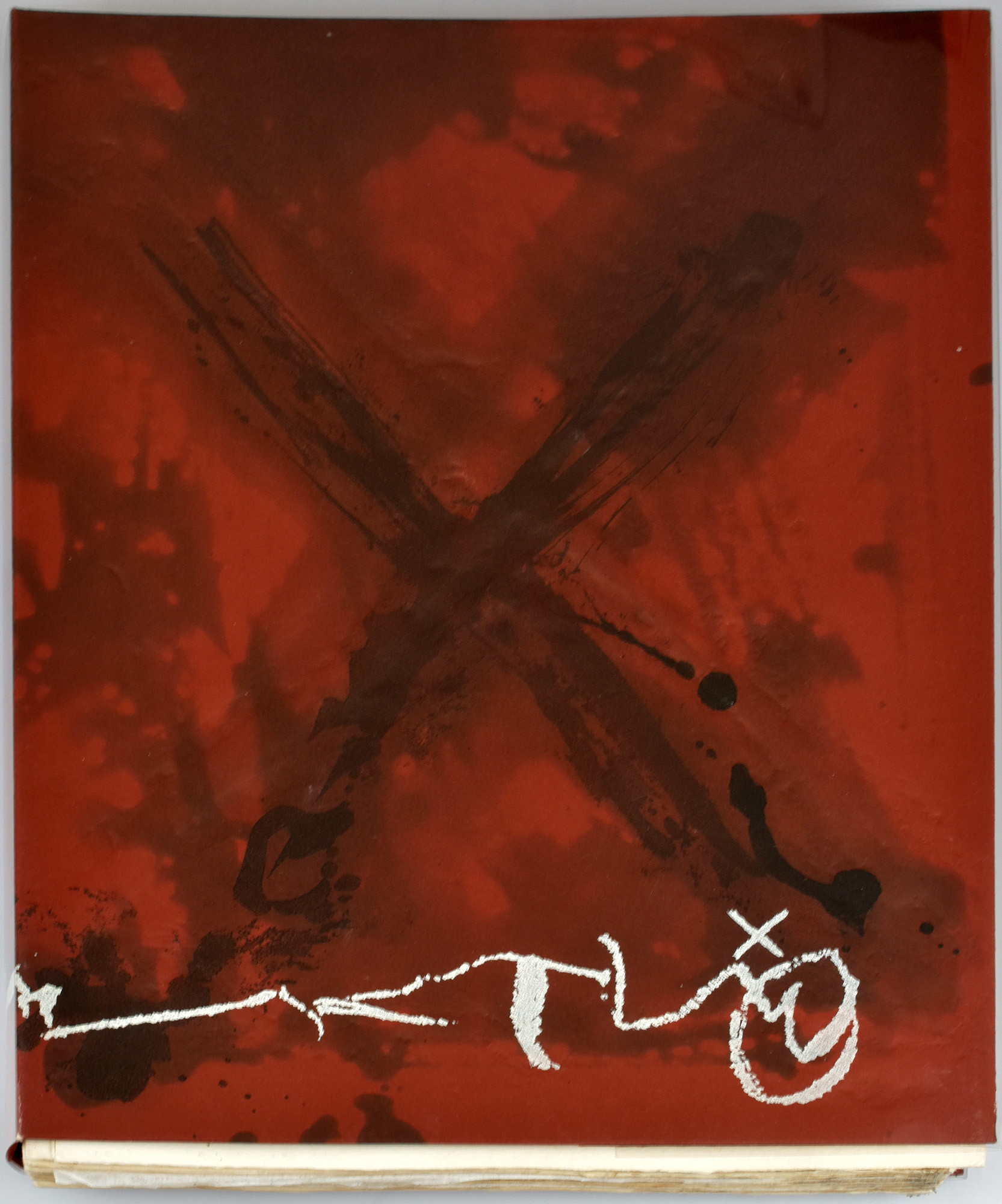 Tapies, Antoni – Ullán, José-Miguel: Anular. Funeral mal V. Gravures, graphismes et découpages par Antoni Tàpies. Paris, Éditions R.L.D. (Robert and Lydia Dutrou), 1981. Groß-4°. 34,5 x 26,5 cm. 50 ungezählte Blatt in Leporello-Faltung lose in Original-Papierumschlag und weiterem cellophaniertem Original-Schutzumschlag, eingelegt in Original-Pappchemise im Original-Pappschuber.