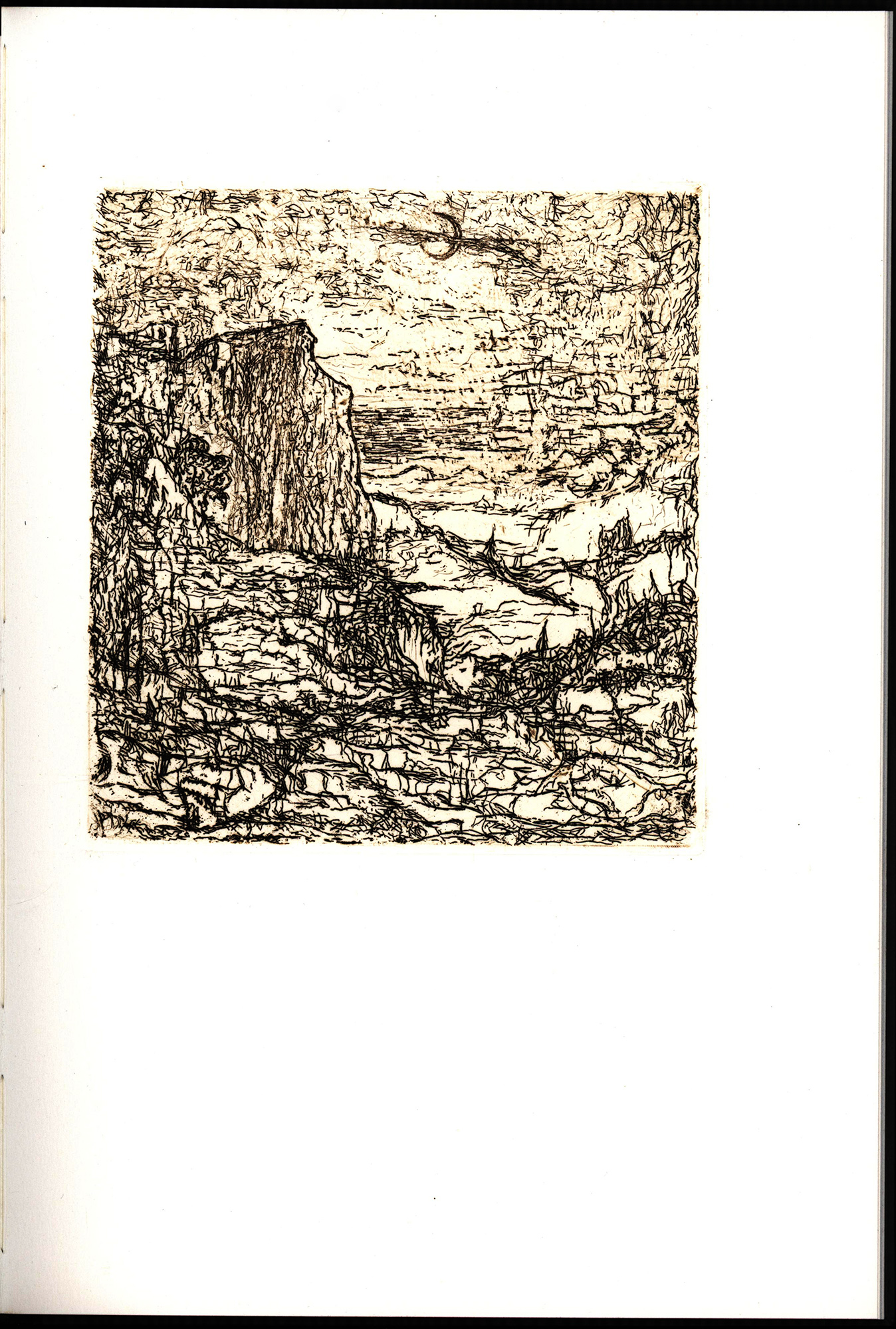 Nummer 119 von 120 nummerierten Exemplaren. Mit 6 ganzseitigen Original-Radierungen auf Tafeln. Den Handsatz fertigte das Typostudio SchumacherGebler München, aus der 14 Punkt Bembo. Den Druck des Textes besorgte die Buchdruckerei SchumacherGebler, die Radierungen druckte Maurice Lallier im Atelier Georges Leblanc, Paris. Das rein Hadernbütten Velin weiß, 250 g, der Papeteries Arches lieferte Drissler & Co, Frankfurt. Den Einband hat Chrsitian Zwang, Hamburg, von Hand gefertigt. Sehr gutes Exemplar.