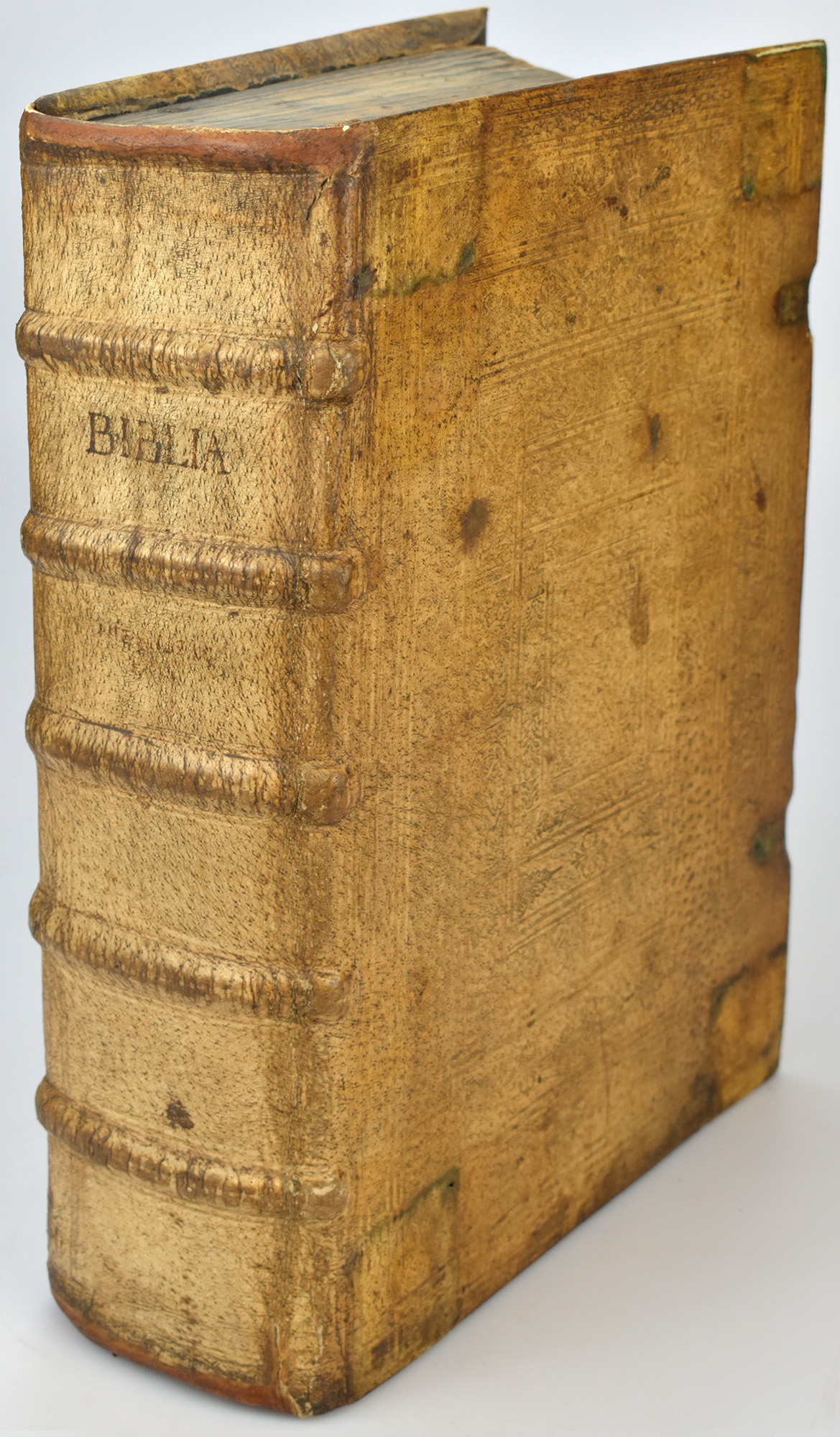 Luther, Martin: Biblia, Das ist: Die gantze Heilige Schrifft, deß Alten und Neuen Testaments wie solche von Herrn Doctor Martin Luther Seel. Im Jahr Christi 1522. in unsere Deutsche Mutter-Sprach zu übersetzen angefangen, Anno 1534. zu End gebracht, und Vor einigen Jahren bereits Mit den Summarien Herrn Johann Sauberti Seel. auch mit dem Vielfältigen und Lehrreichen Nutzen, über alle Capitel, des Herrn D. Salomon Glassens Seel. ausgefertiget. Nürnberg, verlegt durch Johann Andreas Endter, 1706. Groß-4°. 38 x 26 cm. [30] Blatt, 1227 Seiten, [10] Blatt. Blindgeprägter Schweinslederband der Zeit über Holzdeckeln auf 5 Bünden mit Rundum-Blauschnitt.