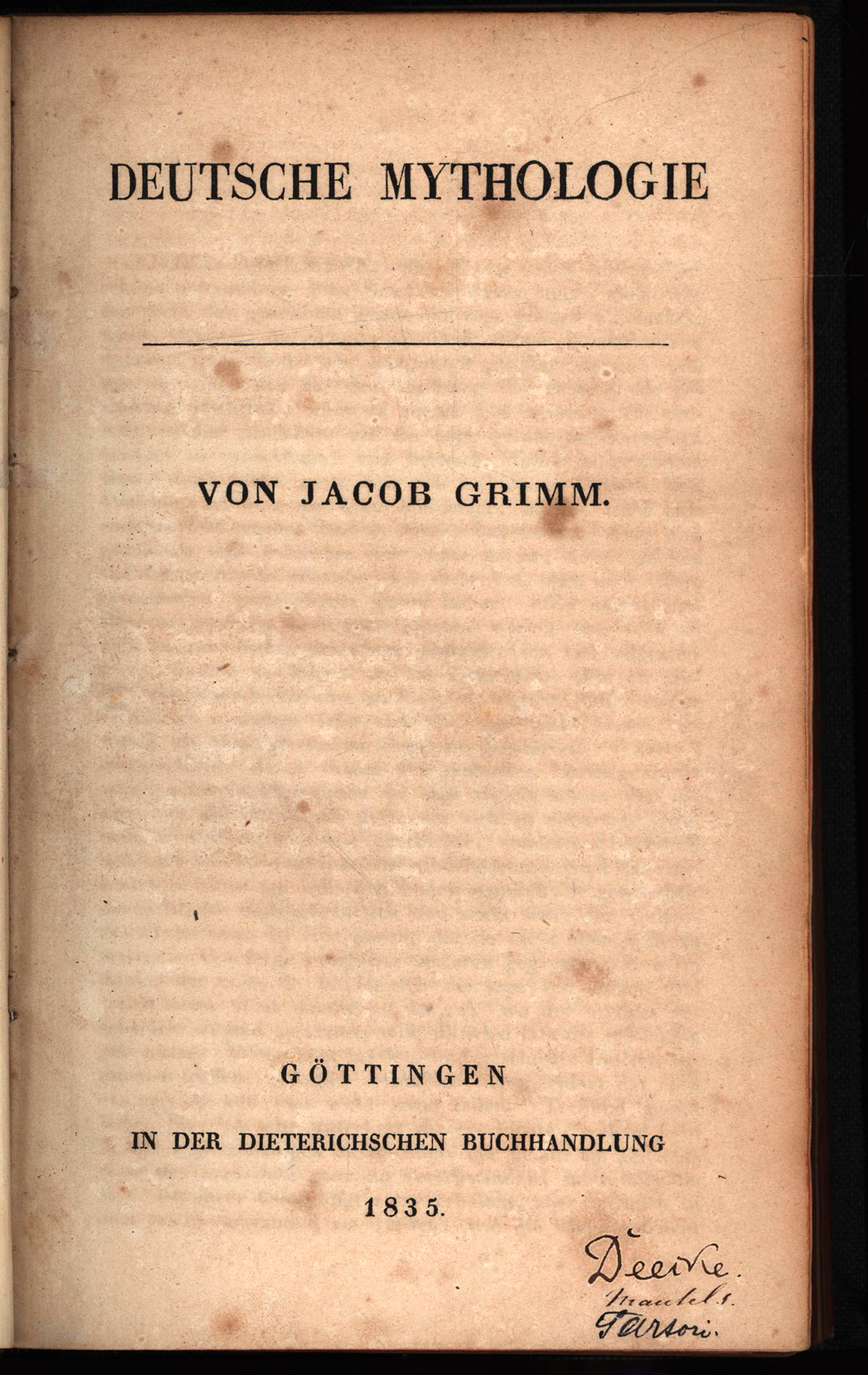Grimm, Deutsche Mythologie. Erste Ausgabe.