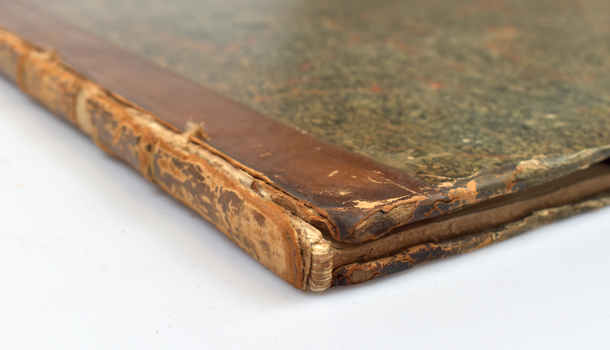 Half leather binding of the time with marbled paper boards. Part of the original wrappers used as title page. First edition. English-language edition. With 20 full-page, numbered mezzotint plates in sepia by Richard Earlom after Claude Lorrain. Binding rubbed, leather on the spine and corners with some losses. Outer joints split, front cover loosened but binding still firm. Pages lightly foxed. The mezzotints preserved in fine, clear impressions. Externally worn, otherwise a good to very good copy.