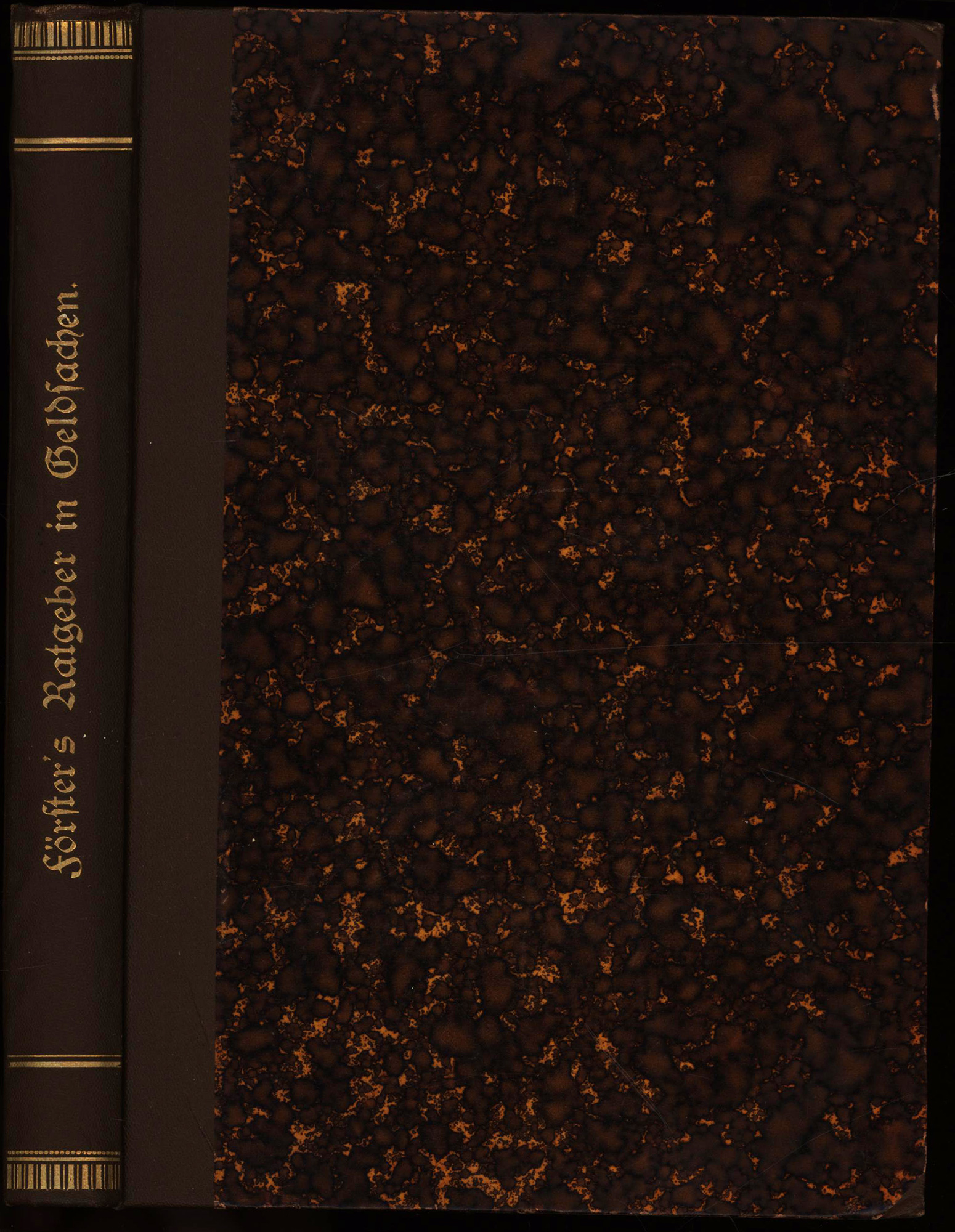 Förster, Oskar: Der Ratgeber in Geldsachen. Praktisches Handbuch für Jedermann über Geldsachen aller Art, insbesondere Vermögens-Verwaltung, Kapitalanlage in Wertpapieren, Aktienwesen, […]. Leipzig, verlegt durch Schorpp, 1888. 8°. 21,5 x 15,5 cm. VIII, 333 Seiten. Halbleinenband der Zeit mit marmoriertem Deckelbezug, illustrierten Vorsätzen und marmoriertem Schnitt.