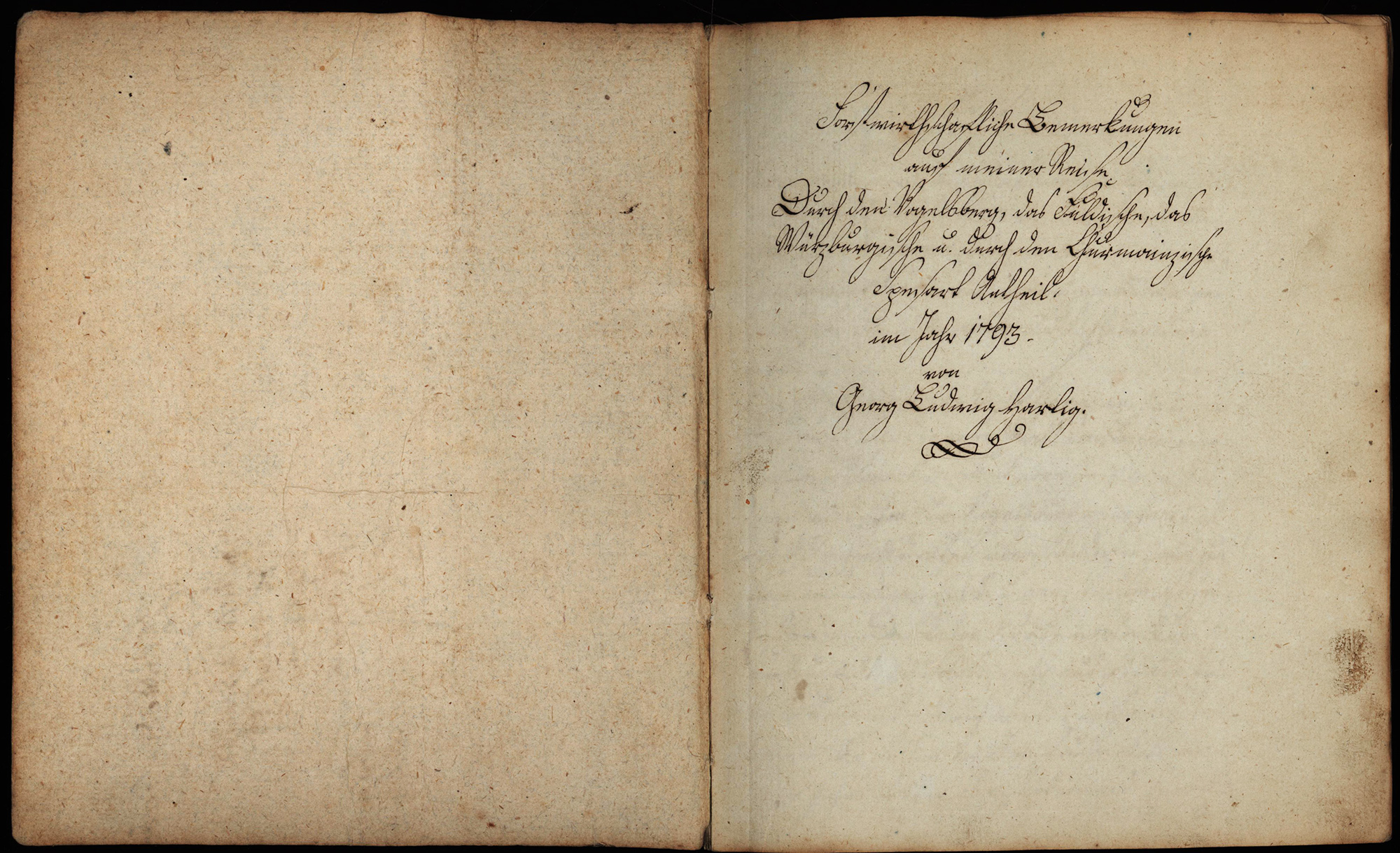 Original marbled interim wrappers. Manuscript by Hartig in ink, in the form of a forestry travel report written as letters to an unknown recipient. Georg Ludwig Hartig (1764–1837) was a pioneer of modern forestry, serving over 25 years as Chief Forest Officer in Prussia, while also teaching at the University of Berlin. He advocated for the preservation of state forests, developed the shelterwood system in silviculture, and introduced sustainable forest management (“Massenfachwerk”). Alongside Heinrich Cotta, he is considered one of the “classics of forestry,” combining practice, research, and teaching. Wrappers slightly rubbed with minor edge wear. Pages only lightly darkened, with occasional minimal foxing and frequent faint show-through. Fine copy.