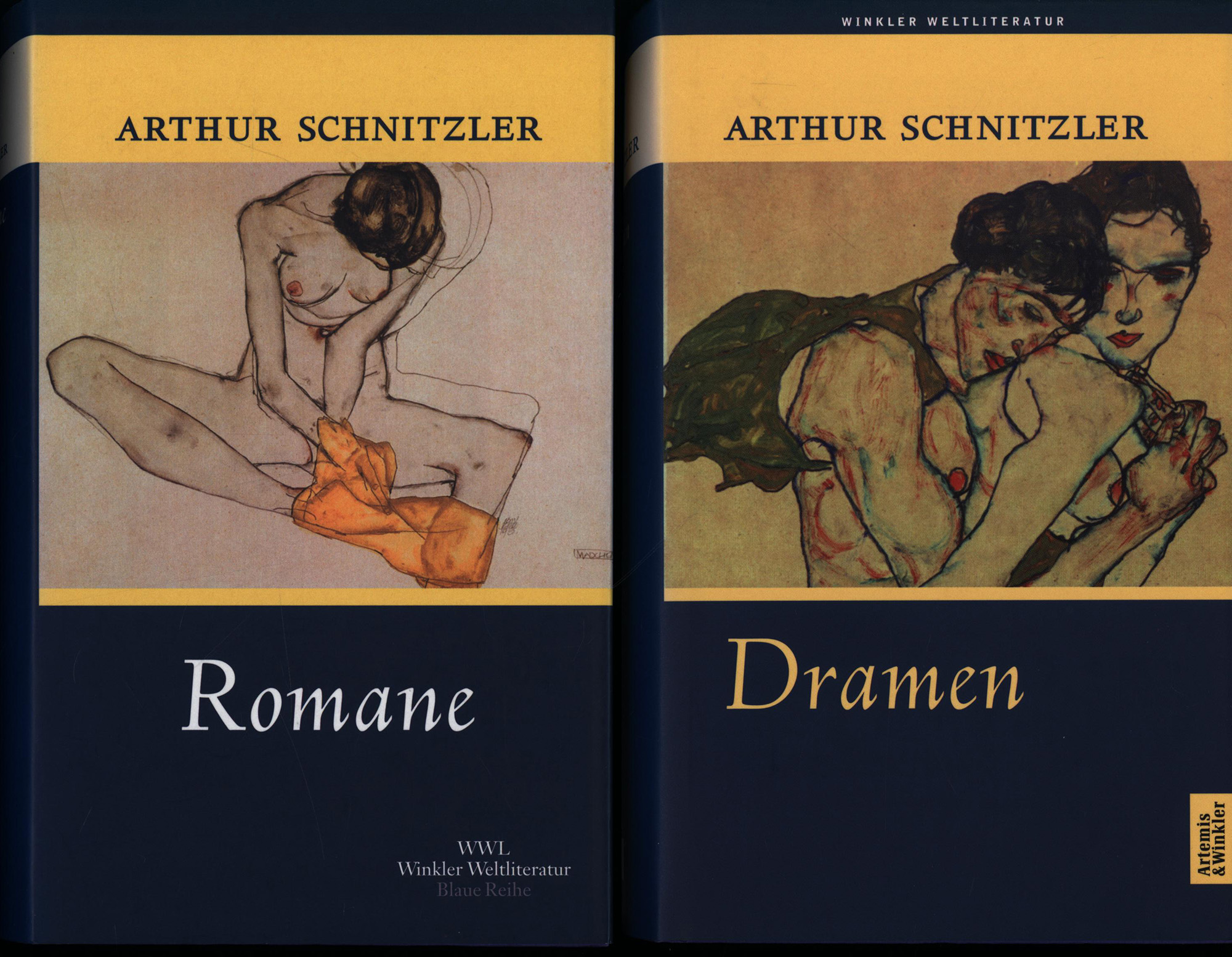 Schnitzler, Arthur: Dramen. Romane. Herausgegeben und mit einem Nachwort versehen von Hartmut Scheible. 2 Bände. Düsseldorf und Zürich, Artemis & Winkler, 2002-2003. 8°. 19,5 x 12 cm. 999 und 839 Seiten. Gebundene Original-Pappbände mit Original-Schutzumschlägen. (=Gesammelte Werke in drei Bänden, Band 2 und 3). (Winkler Weltliteratur).
