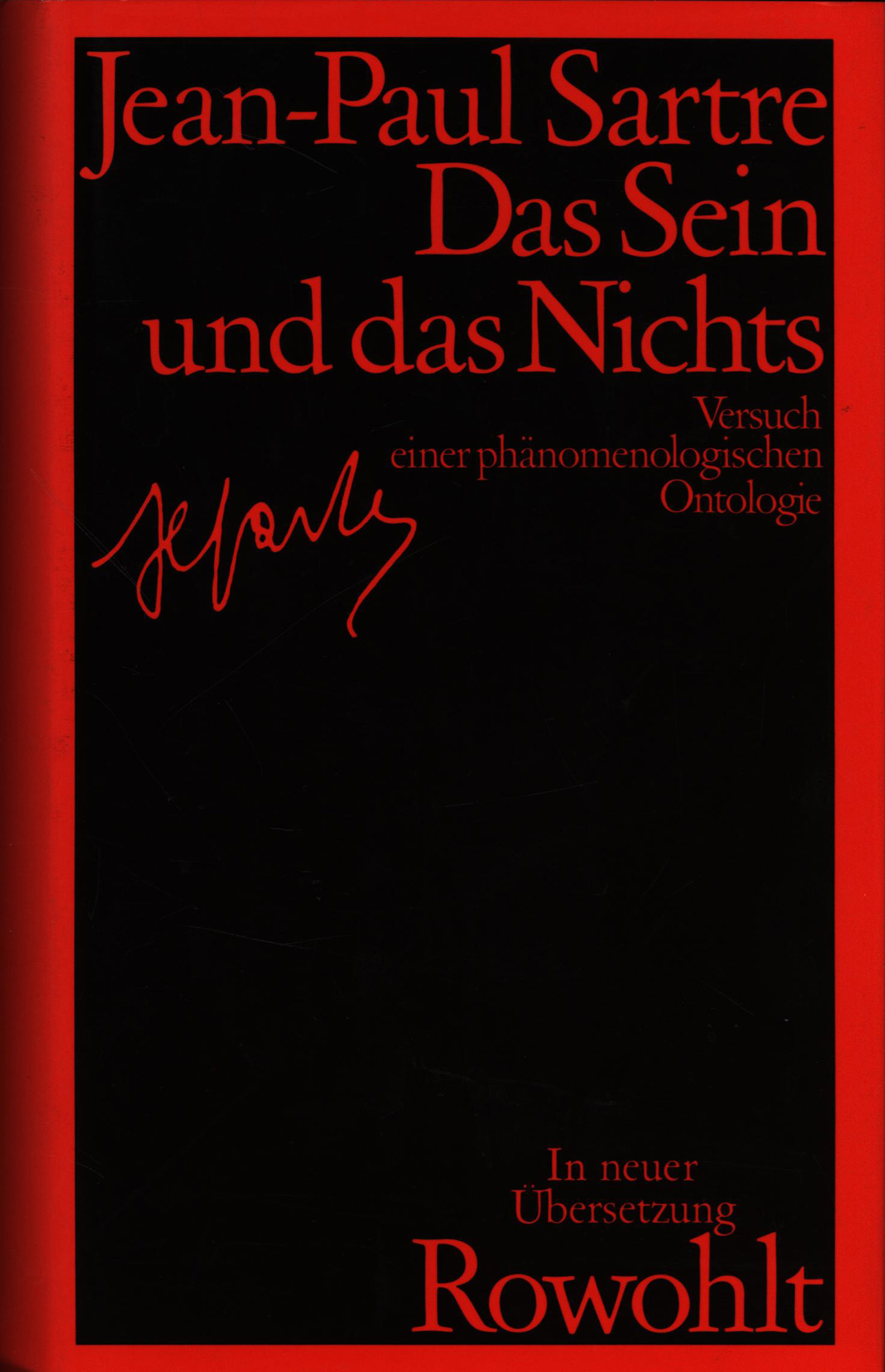 Sartre, Jean-Paul: Das Sein und das Nichts. Versuch einer phänomenologischen Ontologie. Herausgegeben von Traugott König. Deutsch von Hans Schöneberg und Traugott König. Reinbek bei Hamburg, Rowohlt Verlag, 1991. 8°. 20 x 13 cm. 1154 (6) Seiten. Original-Pappband mit Original-Schutzumschlag. (= Jean-Paul Sartre: Gesammelte Werke in Einzelausgaben. Philosophische Schriften, Band 3).