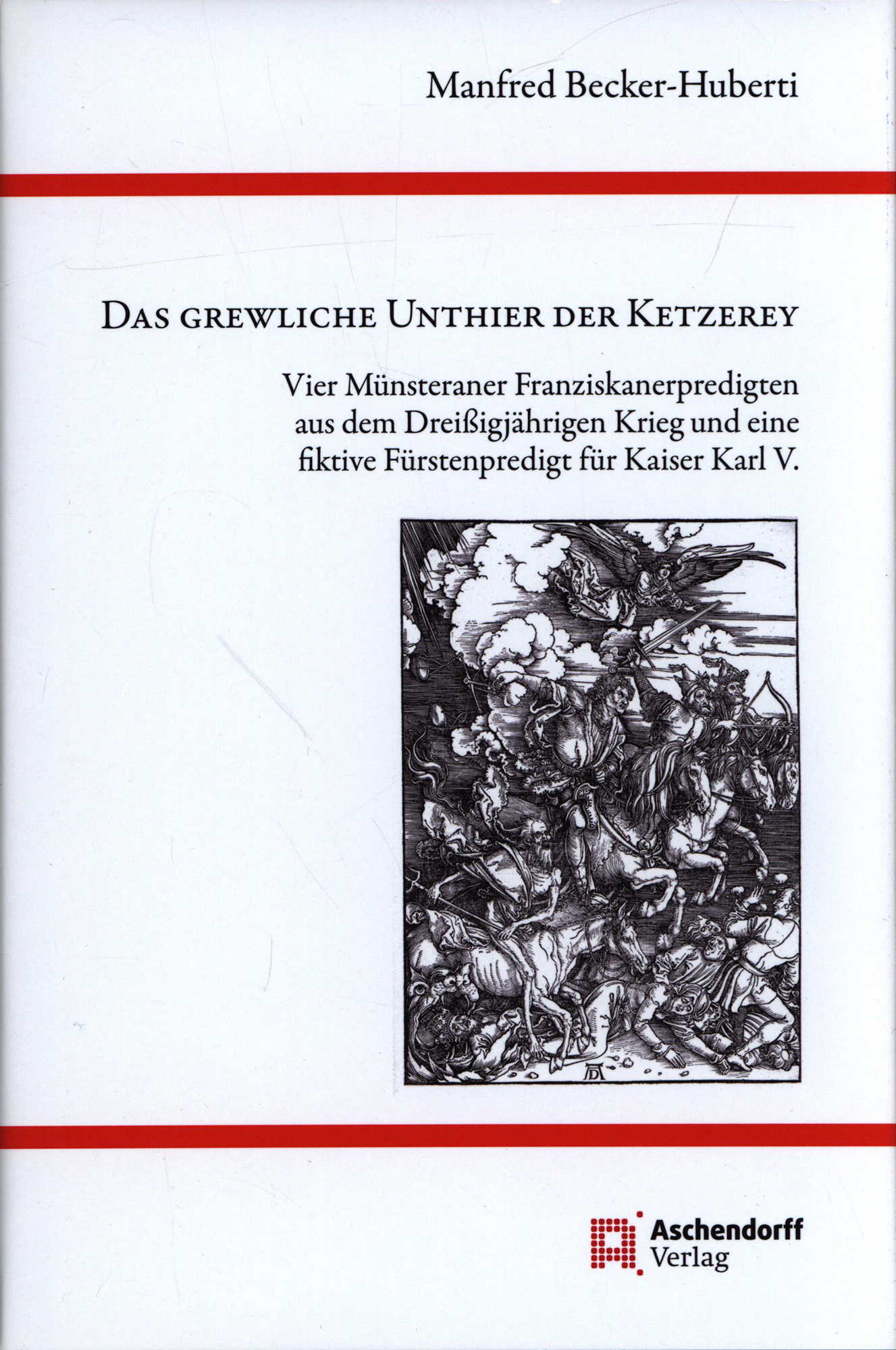 Becker-Huberti, Manfred: Das Grewliche Unthier der Ketzerey. Vier Münsteraner Franziskanerpredigten aus dem Dreißigjährigen Krieg und eine fiktive Fürstenpredigt für Kaiser Karl V. Münster, Aschendorff Verlag, 2020. Groß-8°. 24 x 16 cm. 336 Seiten. Original-Leinenband mit Original-Schutzumschlag. (= Westfalia Sacra, Band 19).