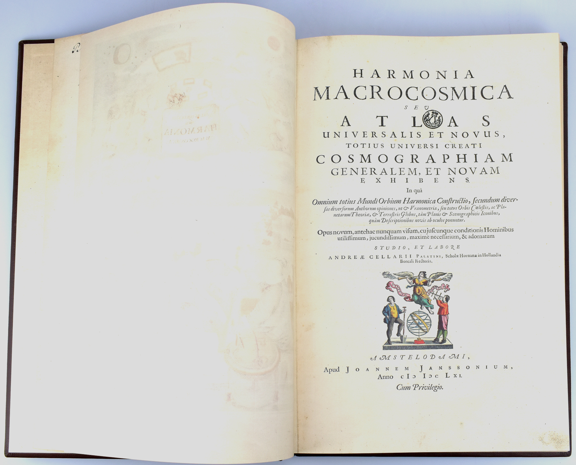 Cellarius, Andreas: Harmonia macrocosmica seu altas universalis novus, totius universi creati cosmographiam generalem, et novam exhibens. Berlin, Coron Verlag, 2008. Groß-2°. 52 x 34 cm. [126], 39 Seiten. Original-Lederband auf 7 Bünden mit papiernem Rückenschild, ornamentaler Goldprägung und gepunztem Rundum-Goldschnitt.