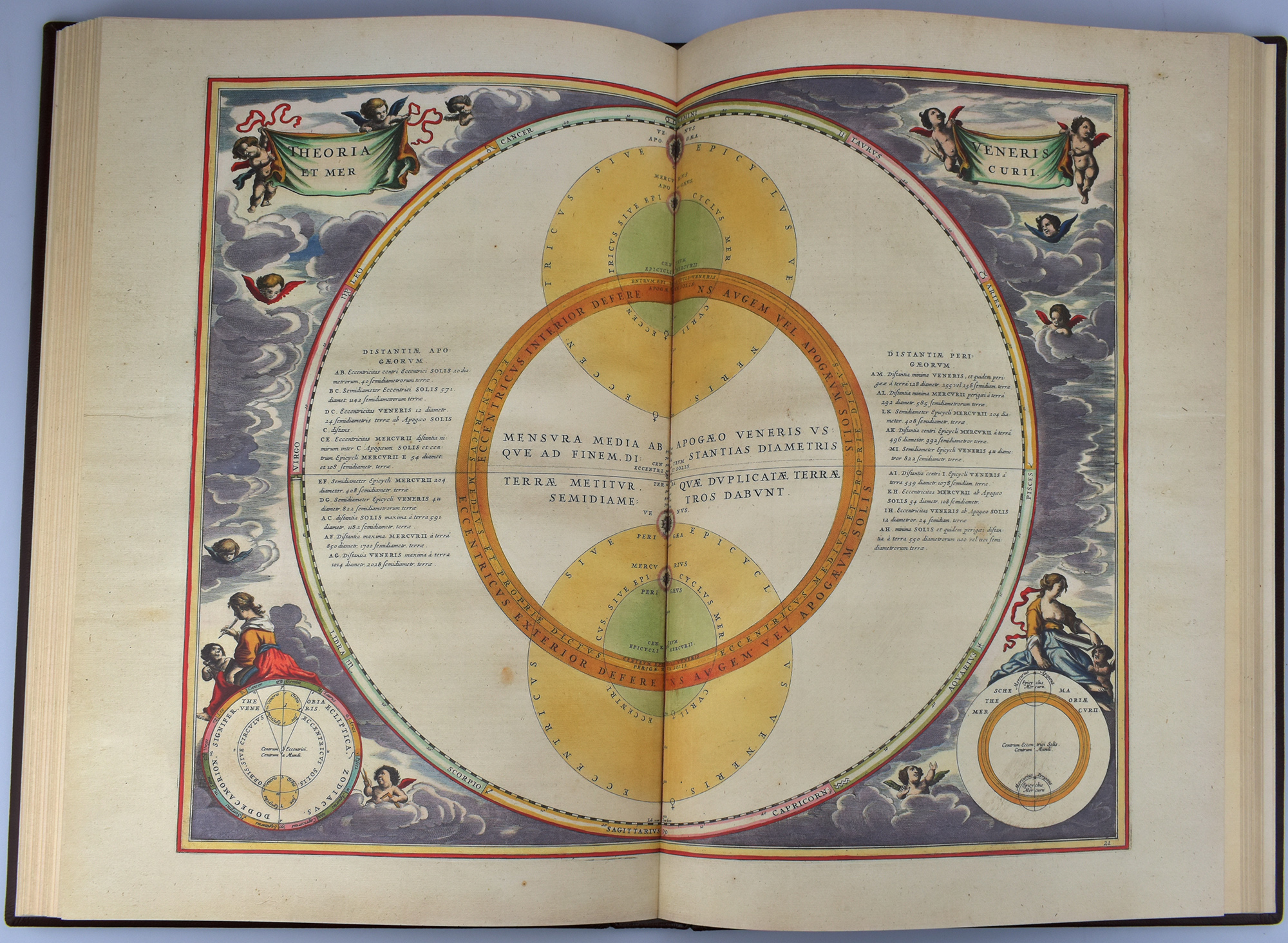 Original leather binding with 7 raised bands, paper spine label, ornamental gilt tooling, and punched gilt edges all around. Facsimile of the edition Amsterdam: Apud Joannem Janssonium, 1661. With a colored and gold-heightened allegorical title page, a colored title vignette, and 29 double-page cosmographical plates in color. The facsimile is followed by a 39-page commentary section outlining the historical context in which Andreas Cellarius’s famous celestial atlas was created. The commentary discusses, among others, Nicolaus Copernicus, Isaac Newton, Tycho Brahe, and Johannes Kepler, and situates the atlas within the contemporary tension between religious tradition and an emerging scientific worldview. The volume concludes with a detailed commentary on each individual plate. Fine copy.