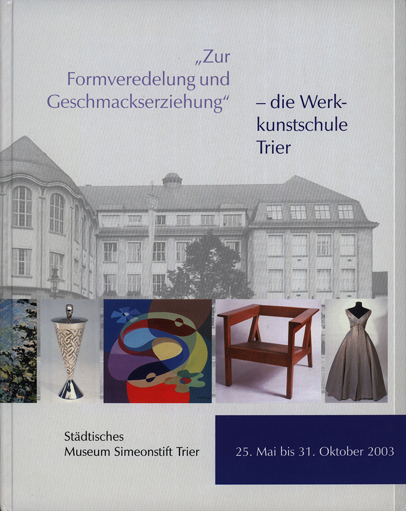 Schulte, Bärbel: „Zur Formveredelung und Geschmackserziehung“. Die Werkkunstschule Trier. Trier, Selbstverlag des Städtischen Museums Simeonstift, 2003. 4°. 29 x 23,5 cm. 477 Seiten. Gebundener Original-Pappband.