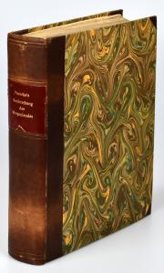 Pock, Johann Joseph: Der Politische Catholische Passagier durchreisend Alle hohe Höfe / Republiquen / Herrschafften und Länder der gantzen Welt. Das ist: Kurtz gründlich wohlverständiger Unterricht / was in Politicis, Geographisch / Historisch / Genealogischen Wesen bey allen Höfen / Republiquen und Herrschafften in der gantzen Welt merckswürdiges zu sehen / zu beobachten und zu mercken: Alles aus denen neuesten Politicis, Geographis, Historicis, Genealogis und andern wohl fundirt geschriebenen Büchern mit sonderbahrem Fleiß zusammen getragen / und in ein kurtzes wohlverständiges Compendium verfasset. Band 1 von 10. Augsburg, Verlag Caspar Brechenmachers, 1718. Klein-8°. 16 cm. 18 Blatt, 1147 (1) Seiten, 13 Blatt. Original-Ganzlederband.