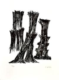 Wotruba, Fritz: Drei Skulpturen. [Signierte Original-Lithografie / signed original lithograph]. Fritz Wotruba, geboren am 23. April 1907 in Wien, gestorben am 28. August 1975 ebenda. Einer der bedeutendsten österreichischen Bildhauer des 20. Jahrhunderts.