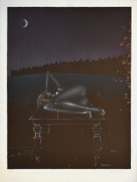Wunderlich, Paul: Twilight. Blatt 7. 1971. [Signierte Original-Farblithografie / signed original color lithograph]. (Paul Wunderlich, geboren am 10. März 1927 in Eberswalde, gestorben am 6. Juni 2010 in Saint-Pierre-de-Vassols/Provence). Maler, Zeichner, Bildhauer und Grafiker, der in seinen neosurrealistischen Bildern und Skulpturen überwiegend erotische und mythologische Themen bearbeitete).