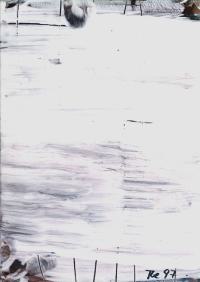 Telljohann, Peter: Projekt 1001. Ohne Titel. [Unikat, Signiertes Original-Gemälde / Unique, signed original painting]. Das Projekt 1001 wurde 1996 von dem Kunstsammler Ralf Seilheimer ins Leben gerufen. Er schrieb 1001 Künstlerinnen und Künstler mit der Bitte an, ihm auf einer „nummerierten Blancokarte (10,5 x 14,8 cm) ein kleines Gefälligkeitskunstwerk zu zaubern…“ Peter Telljohann, geb. 1955 in Ibbenbüren, zeitgenössischer deutscher Künstler. 1977-1983 Studium an der Kunstakademie in Münster.
