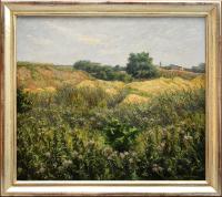Wildhagen, Fritz: Dünenlandschaft. [Signiertes Original-Gemälde, gerahmt / signed original painting, framed]. (Fritz Wildhagen, geb. 16.03.1878 in Moskau, gest. 1956 in Schloß Holte-Stukenbrock bei Bielefeld. Deutscher Schriftsteller und bekannter Landschaftsmaler, Vertreter des Impressionismus. Studium der Kunstgeschichte in Berlin bei Herman Grimm und Malerei an der Akademischen Hochschule für bildende Künste. 1907 begleitete er Staatssekretär Bernhard Dernburg, Walther Rathenau und andere Offizielle, als offiziell bestellter Maler, auf eine Studienreise durch Afrika).