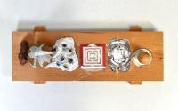 Kranz, Kurt: Objekt für KPD. 1995. [Assemblage, Collage / assemblage, collage]. Kurt Kranz, geboren am 3. Mai 1910 in Emmerich, gestorben am 22. August 1997 in Wedel. Deutscher Maler, Grafiker und Hochschullehrer. 1925 bis 1930 Lehre als Lithograph in Bielefeld, lernte 1929 László Moholy-Nagy kennen. Dann Studiium am Bauhaus in Dessau und in Berlin bei Josef Albers, Joost Schmidt und Walter Peterhans. Kurse bei Paul Klee und Wassily Kandinsky. 1933 Diplom, Kurz vor der auf nationalsozialistischen Druck erfolgten Schließung des Bauhauses .