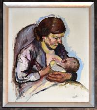 Paolo (d.i. Paul Jakob Müller): Stillende. [Signiertes Original-Gemälde, gerahmt / signed original painting, framed]. (Paul Jakob Müller, Pseudonym PAOLO, geb. 08.04.1894 in Bern, gest. 18.02.1982 in Bremgarten bei Bern, Schweizer Maler und Zeichner).