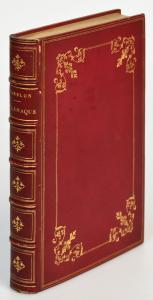 Fénelon, François de Salignac de La Mothe: Les aventures de Télémaque par Fénelon avec son éloge par la Harpe. Paris, Verlag Furne, 1853. Groß-8°. 23 x 16 cm. XXIII, 415 Seiten. Dekorativer roter Lederband der Zeit auf 5 Bünden mit reicher floraler Goldprägung, godlgeprägtem Rückentitel und Rundum-Goldschnitt.