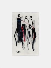 Müller, Josef Felix: Projekt 1001. Blindzeichnung. Paar. [Unikat, signierte Original-Zeichnung / Unique, signed original drawing]. Das Projekt 1001 wurde 1996 von dem Kunstsammler Ralf Seilheimer ins Leben gerufen. Er schrieb 1001 Künstlerinnen und Künstler mit der Bitte an, ihm auf einer „nummerierten Blancokarte (10,5 x 14,8 cm) ein kleines Gefälligkeitskunstwerk zu zaubern…“ Josef Felix Müller, geb. 10.12.1955 in Eggersriet (CH), Schweizer Bildhauer, Grafiker und Maler.