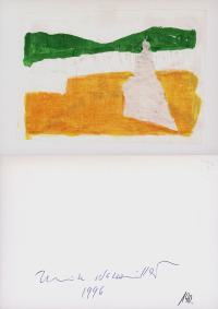 Nattermüller, Ulrike: Projekt 1001. Ohne Titel. [Unikat, Signierte Original-Zeichnung / Unique, signed original drawing]. Das Projekt 1001 wurde 1996 von dem Kunstsammler Ralf Seilheimer ins Leben gerufen. Er schrieb 1001 Künstlerinnen und Künstler mit der Bitte an, ihm auf einer „nummerierten Blancokarte (10,5 x 14,8 cm) ein kleines Gefälligkeitskunstwerk zu zaubern…“ Ulrike Nattermüller, geboren1955. Deutsche Künstlerin.