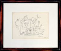 Petitpierre, Petra: Croquis. (Skizze). [um 1945]. [Signierte Tuschfederzeichnung / signed Signed pen and ink drawing]. (Petra Petitpierre, geborene Frieda Kessinger, geboren am 13. Mai 1905 in Zürich, gestorben am 23. Dezember 1959 in Murten. Schweizer Malerin, Zeichnerin und Grafikerin. Nach einer kaufmännischen Lehre studierte sie 1926/27 an der ETH Zürich. 1927 bis 1929 Besuch des Bauhauses in Dessau, Vorkurs bei Josef Albers und Wassily Kandinsky. Meisterschülerin bei Paul Klee, dem sie 1931 an die Kunstakademie Düsseldorf folgte und das Studium dort abschloss. 1932 arbeitete sie bei Fernand Léger in Paris. 1933 ging sie zurück in die Schweiz).