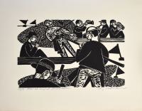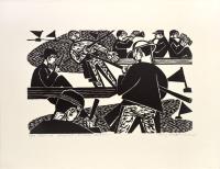 Deutzmann, Schattenspiel. 1950. Monogrammierter Original-Holzschnitt, gerahmt.