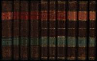 Oken, Lorenz: Allgemeine Naturgeschichte. 10 Bände [von 13]. Stuttgart, Hoffmann Verlag, 1835-1839. 8°. 21 x 13,5 cm. 860; III, 386; 702 Seiten; Seite [1447]-2135, XXX, 44 Seiten; XIV, 538; Seiten [539]-1050; 698 Seiten; IV, 685 Seiten; VIII, Seiten [689]-1432; Seite [1433]-1872. Halblederbände mit goldgeprägten Titeln auf farbigen Lederrückenschildchen, goldgeprägten Rückenfileten, marmoriertem Deckelbezug und Rundum-Gelbschnitt.