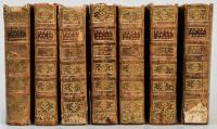Pluche, Noël Antoine: Le Spectacle De La Nature, Ou Entretiens Sur Les Particularités De L’Histoire Naturelle. 7 Bände [von 8 in 9]. Paris, Verlag der Brüder Estienne, 1752-1755. Klein-8°. 17,5 x 10,5 cm. XXIII, 561 Seiten, [1] Blatt; XXIV, 468 Seiten; [1] Blatt, 576 Seiten; 621 Seiten; [1] Blatt, 596 Seiten, [2] Blatt; [1] Blatt, 601 Seiten, [1] Blatt; [1] Blatt, 559 Seiten, [1] Blatt. 202 [von 203] Tafeln. Lederbände der Zeit auf 5 Bünden mit florarer Rückenvergoldung, goldgeprägtem Rückentitel auf rotem Lederschild, marmorierten Vorsätzen und marmoriertem Schnitt.