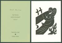 Stein, Heinz – Kunert, Günter: Abendstimmung. Gedichte. Holzschnitte. [Signiertes Exemplar, 3 Original-Holzschnitte]. Hauzenberg, Edition Toni Pongratz, 1983. 4°. 30 cm. 8 Seiten Text. 3 lose Blatt. Original-Broschur. (= Edition Toni Pongratz. Literarisch-Graphische-Blätter. Nummer V).