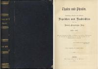 Thaten und Phrasen. Sammlung officieller und officiöser Depeschen und Nachrichten über den Deutsch-Französischen Krieg von 1870-1871. Nebst einer Chronologie des Kriegs, dem Wortlaut des Frankfurter Friedensvertrags und einer Karte des Kriegsschauplatzes mit der Demarcationslinie und den Occupationsgebieten in Frankreich. Lüge ist mächtig, hat aber nur kurzes Leben (Alter Spruch). Leipzig, J. J. Weber, 1871. 8°. 344 Seiten. Halblederband der Zeit. 1 Karte.