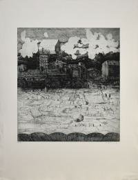 Ackermann, Franz: Helicopter (moving parc). [20]03. [Signierte Original-Radierung / Signed original engraving]. Franz Ackermann, geboren am Franz Ackermann 1963 in Neumarkt-Sankt Veit. Deutscher Maler, Grafiker. Studium 1984-88 an der Akademie der Bildenden Künste in München, 1989-91 an der Hochschule für Bildende Kunst in Hamburg bei Bernhard Blume